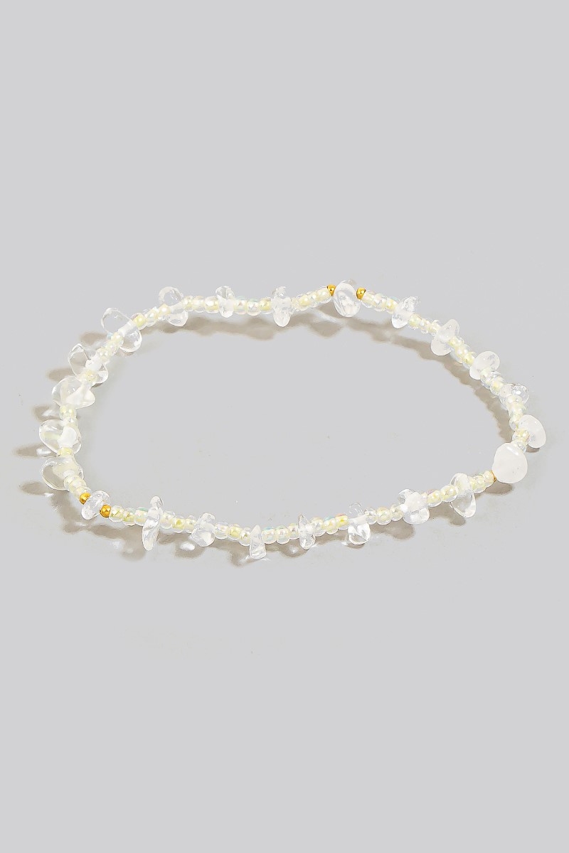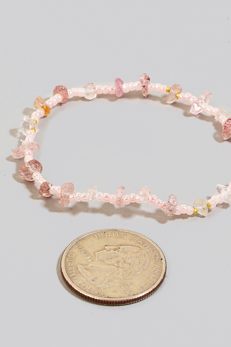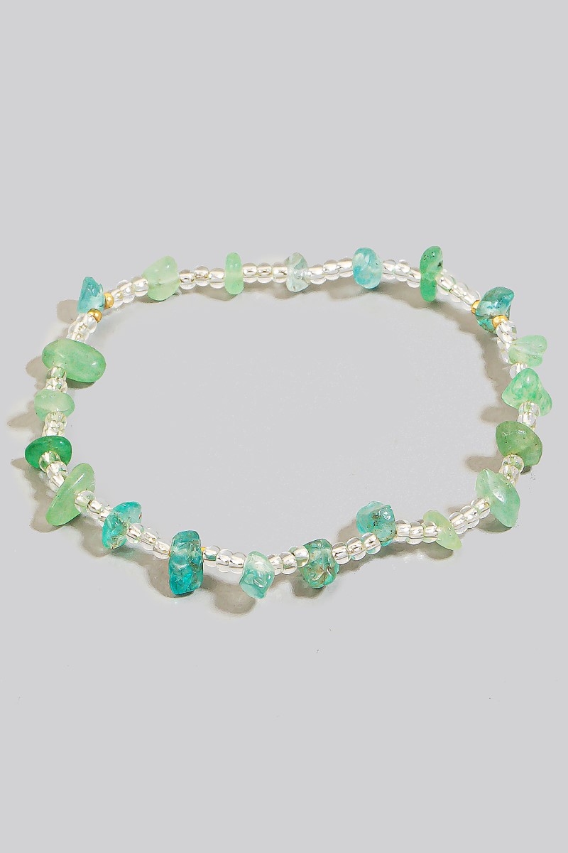 - This bracelet displays a vibrant glass and pebble stone beads elastic style. Discover the perfect balance of functionality and fashion.