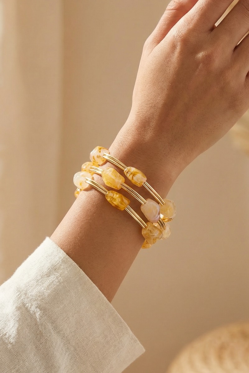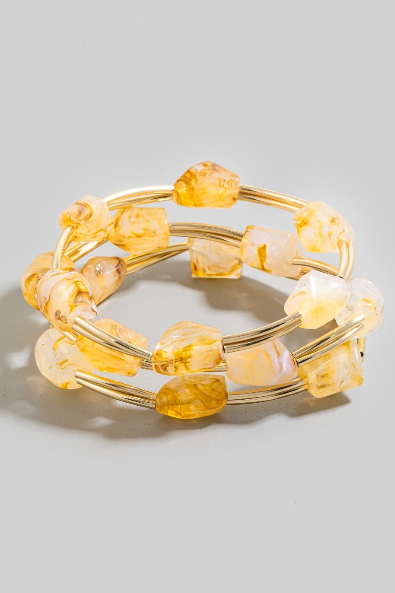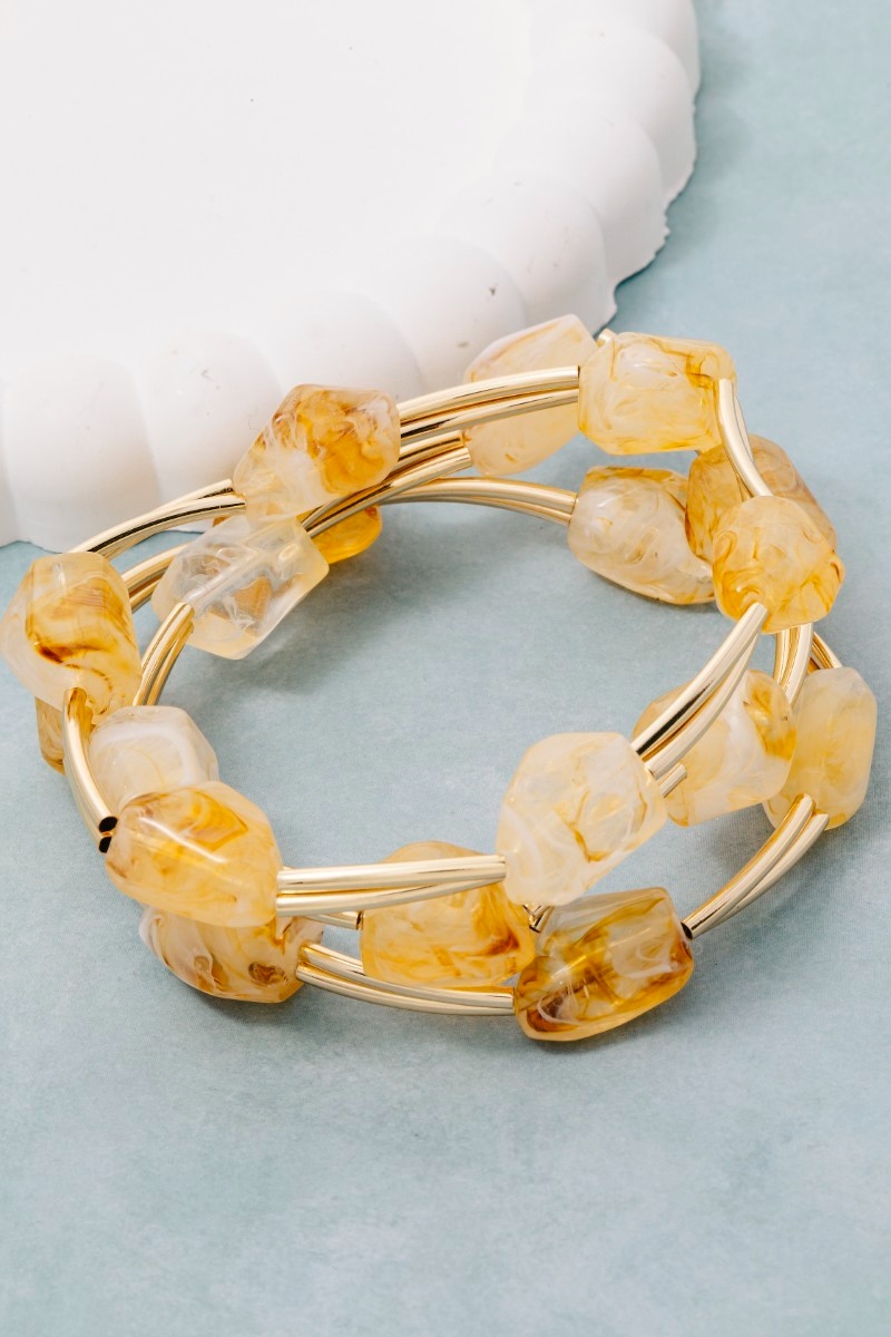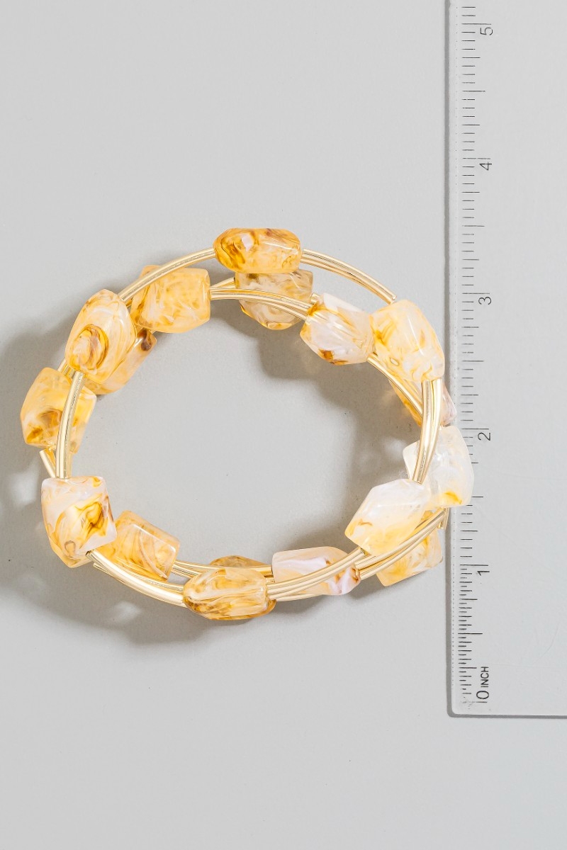 - This bracelet adds a modern marble resin stones and metallic tubes set style. Celebrate individual style with this versatile, eye-catching addition.