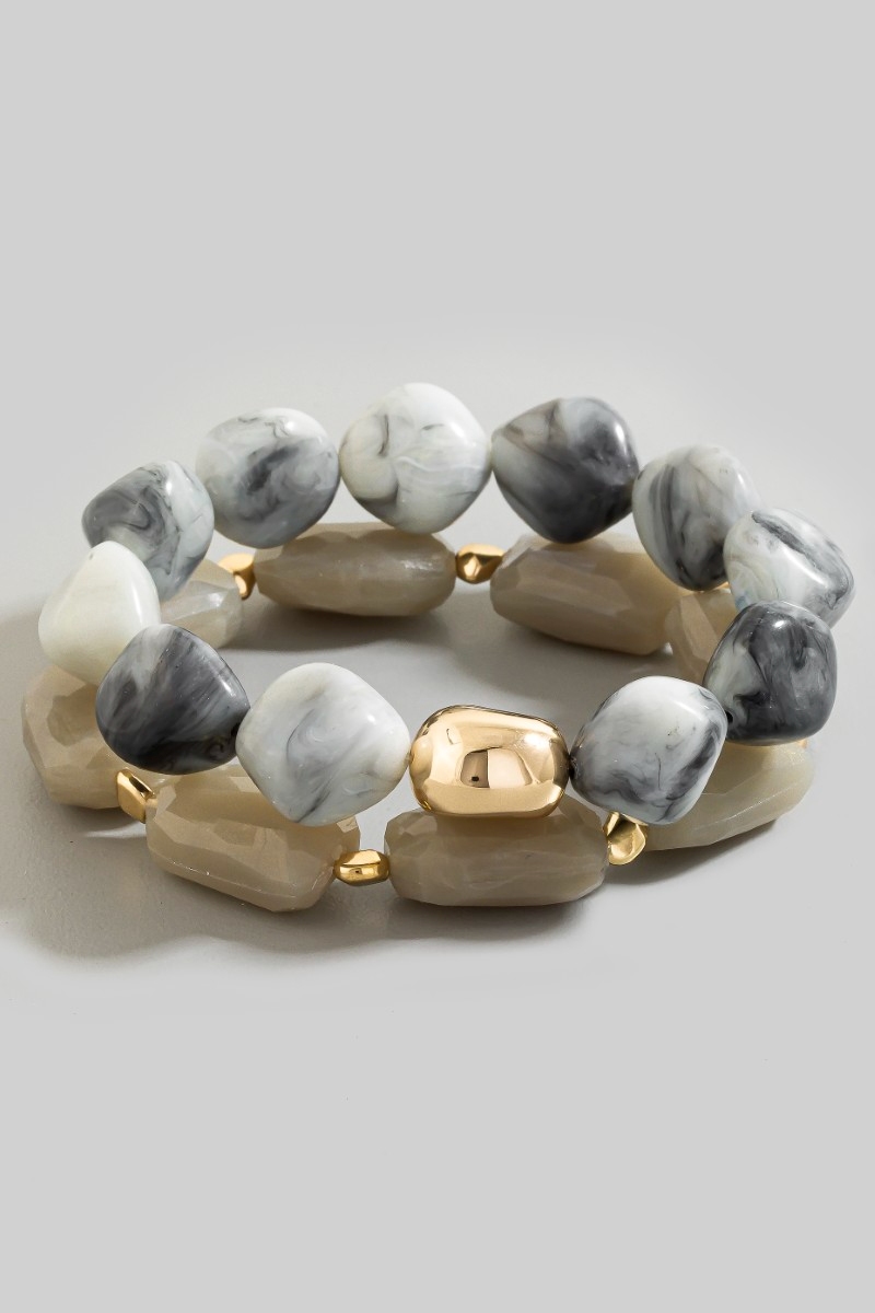 - This bracelet brings a luxurious mixed chunky acrylic beaded set style. Unveil a new dimension of sophistication as this bracelet effortlessly enhances the elegance of your ensemble.
