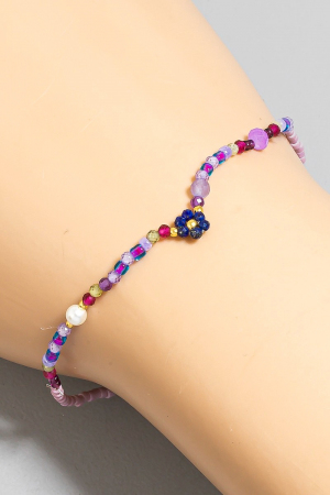 - This bracelet showcases a unique pearl and glass beaded flower elastic style. Elevate your ensemble with this bracelet that effortlessly captures the essence of refined fashion.