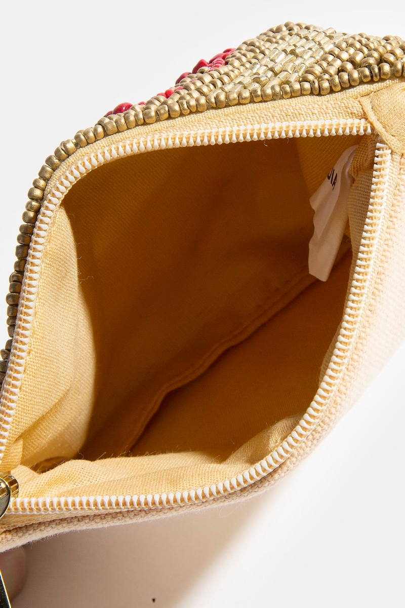 • This coin purse brings a stunning seed beaded multi cherry fruit style. Experience a subtle blend of modernity and classic charm as this coin purse effortlessly adorns your ensemble.