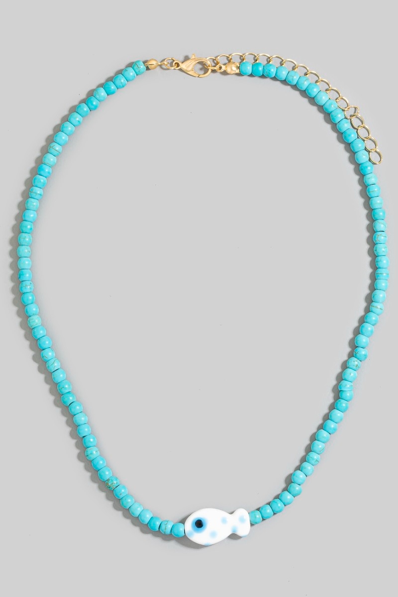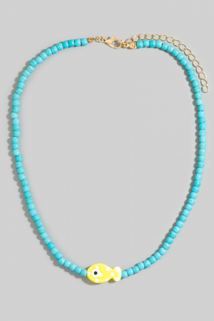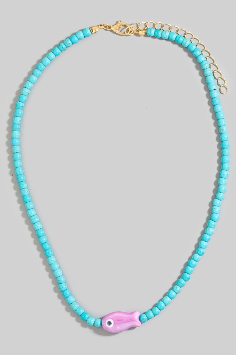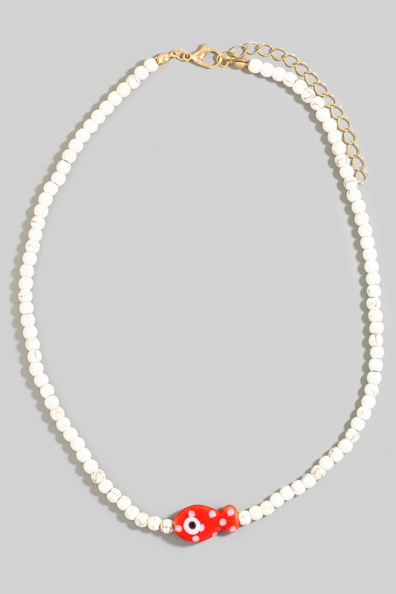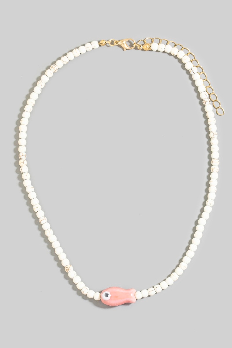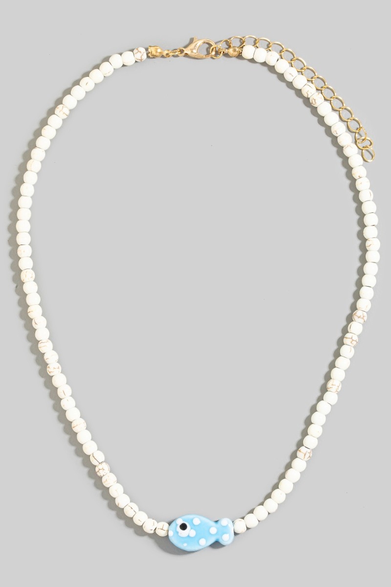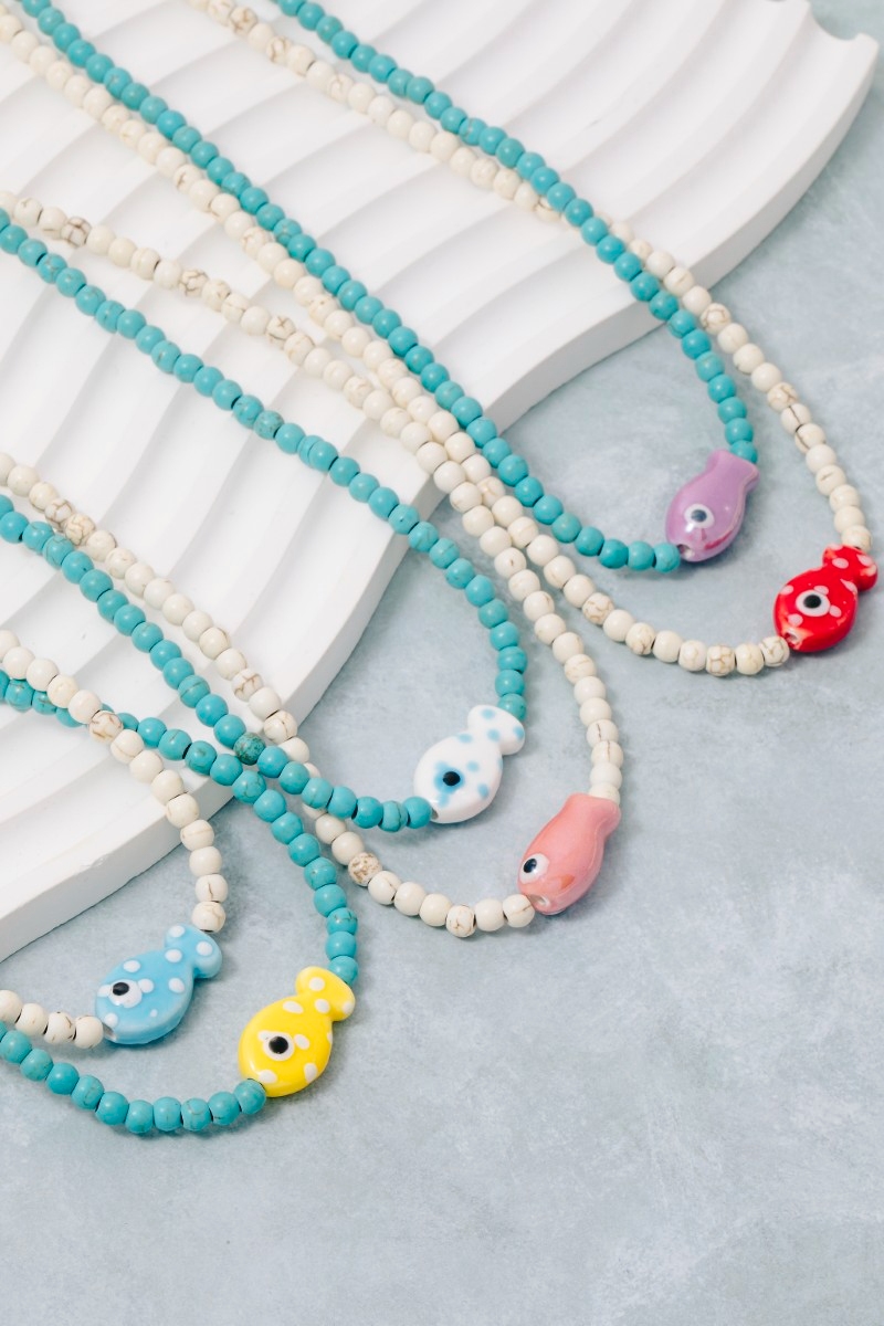 • This necklace introduces a unique ceramic fish pendant ball beaded style. Experience a burst of creativity in accessorizing as this piece effortlessly sets the tone for your unique style.