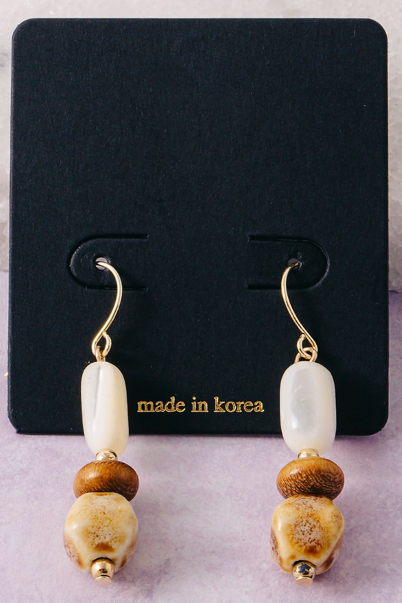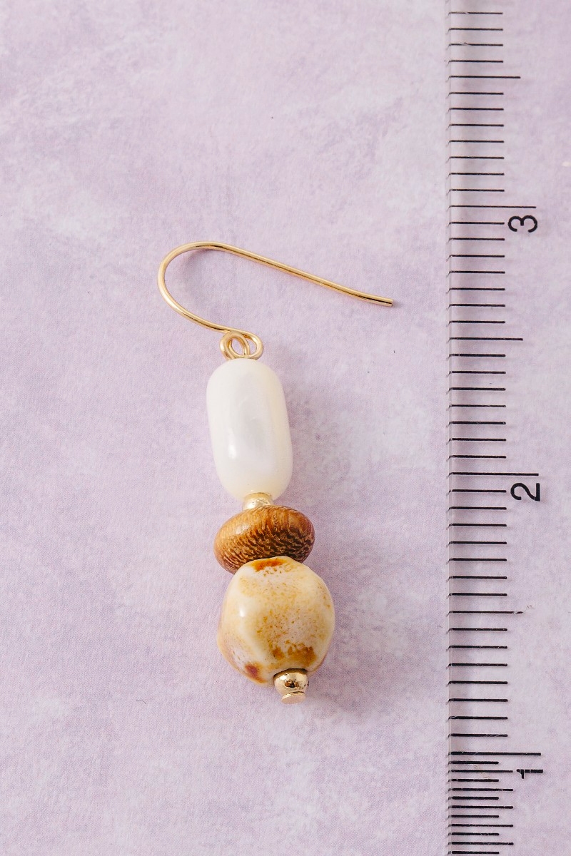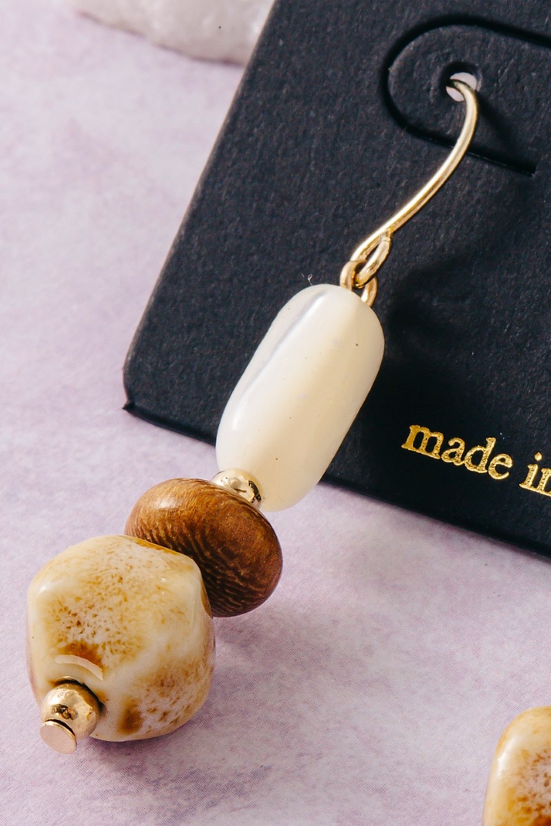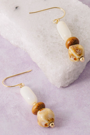 - This pair of dangle earrings displays a vibrant ceramic wood and sea shell beads style. Delight in the nuanced details that make this pair of dangle earrings a testament to fine design and impeccable taste.