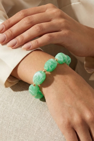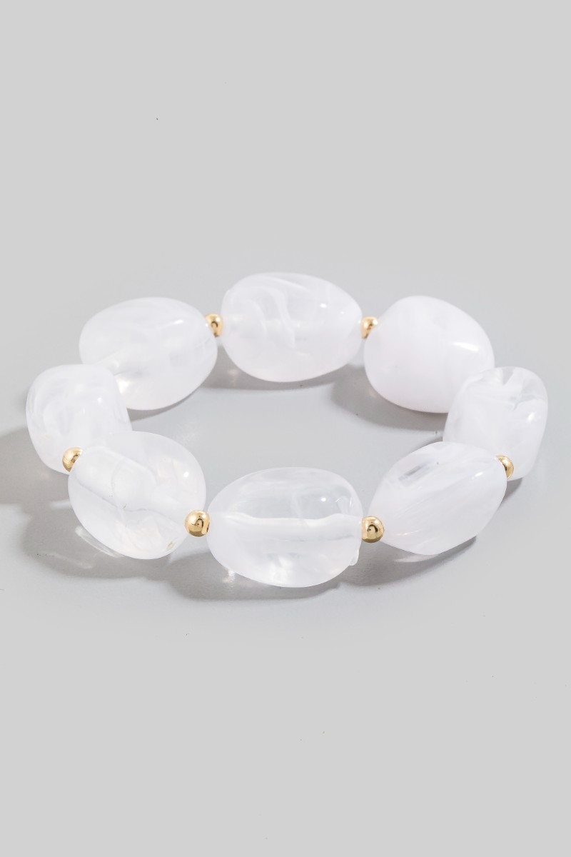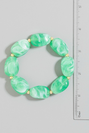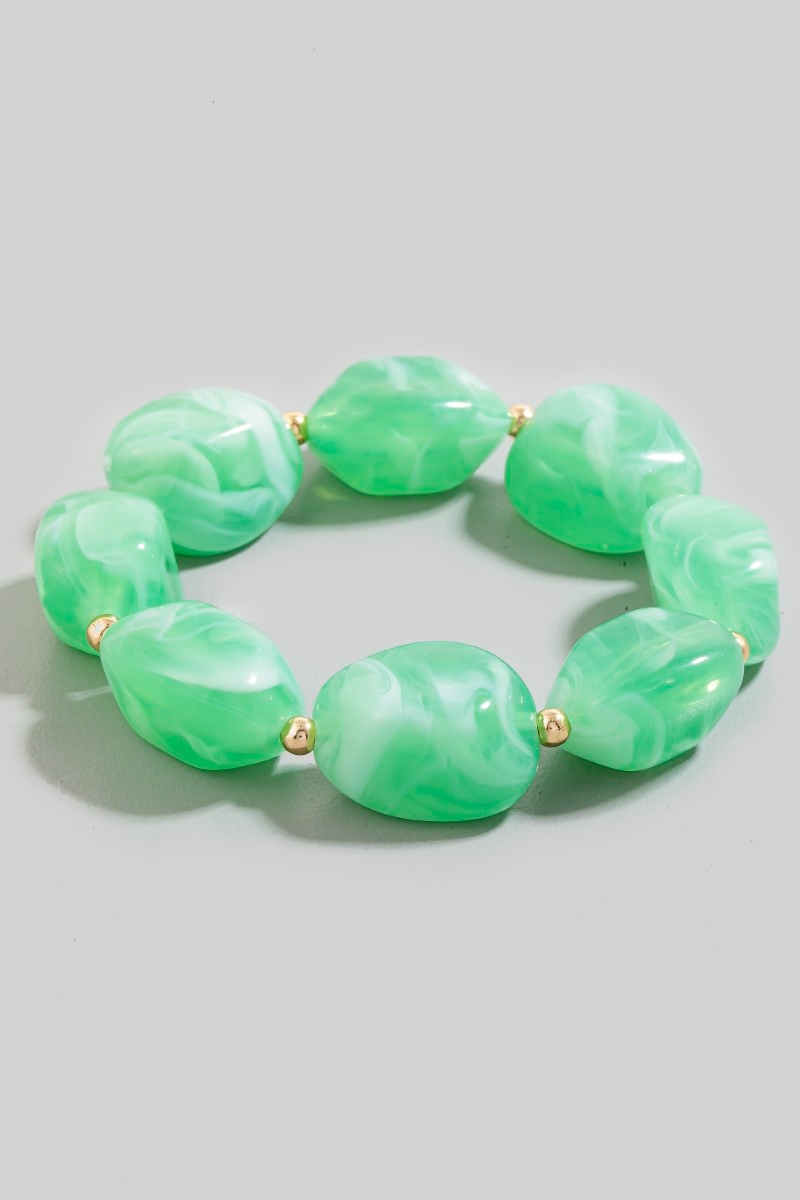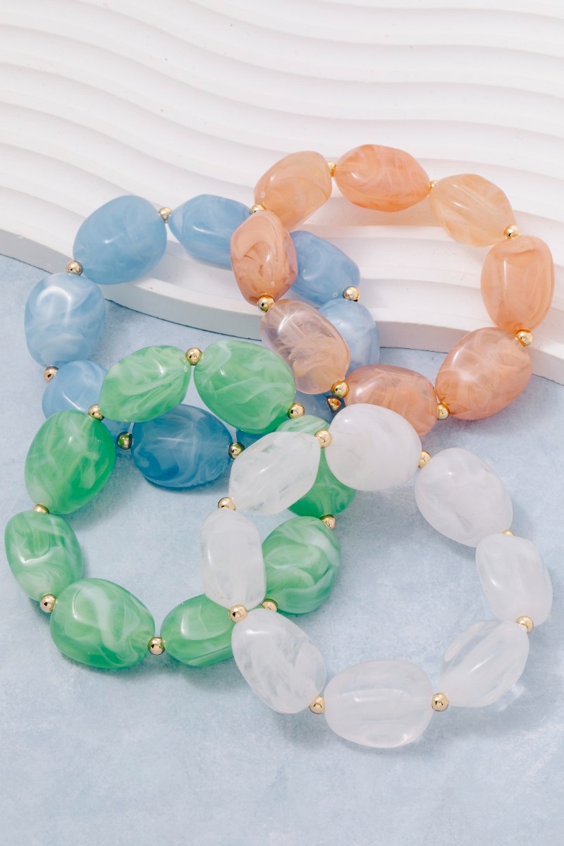 • This bracelet introduces a stunning chunky marble resin beaded style. Experience a subtle blend of modernity and classic charm as this bracelet effortlessly adorns your ensemble.