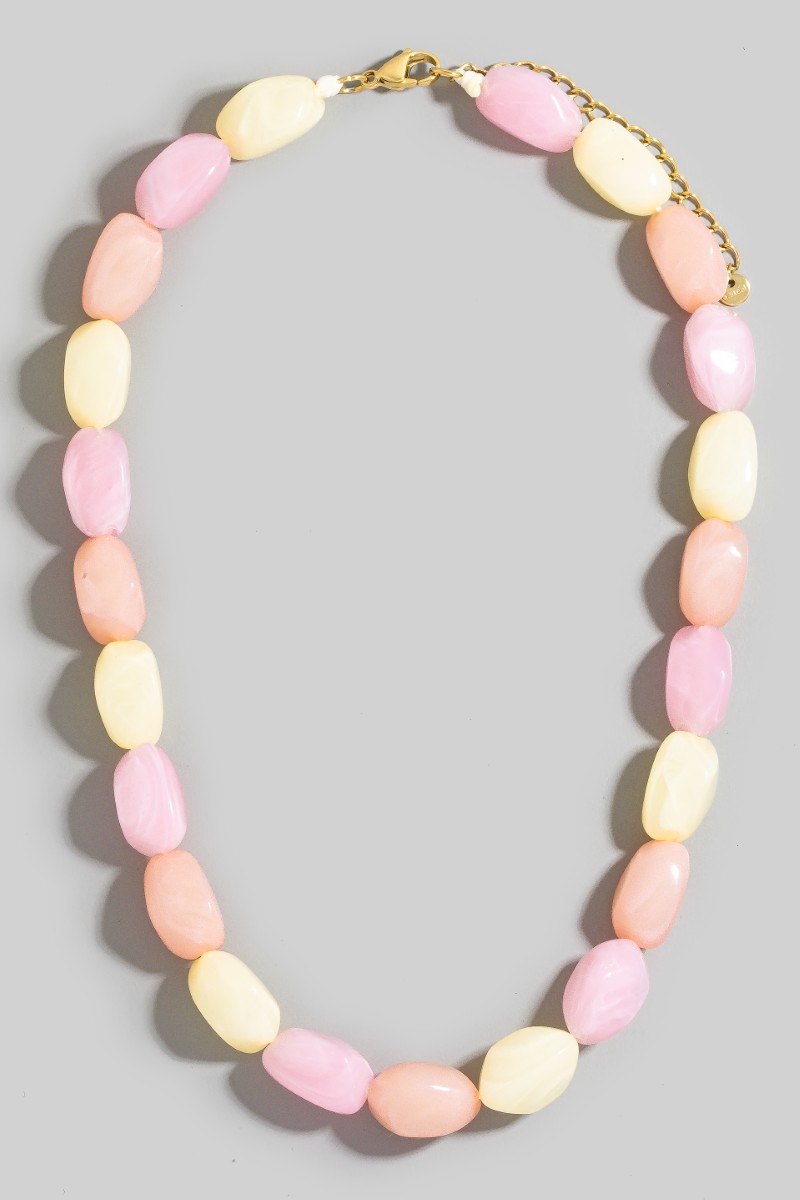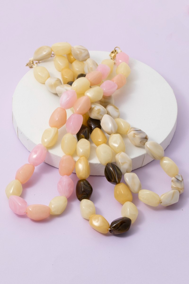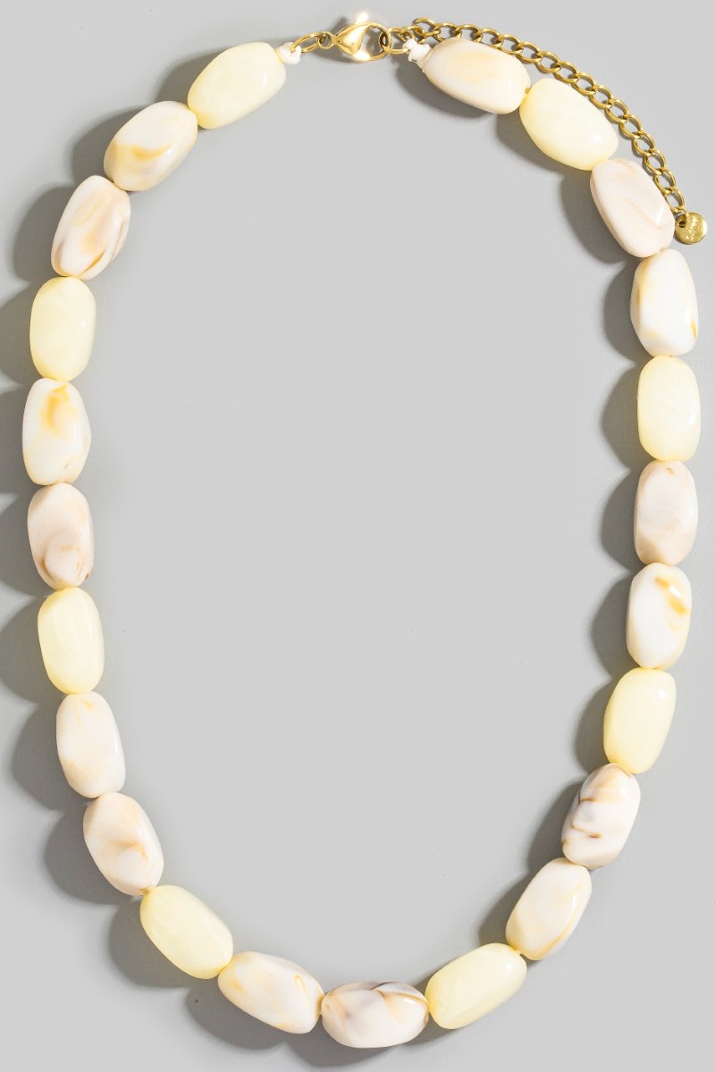 • This necklace displays a fashionable chunky marble resin beads style. Explore a refined sense of style with this necklace, seamlessly elevating the chic factor of your look.