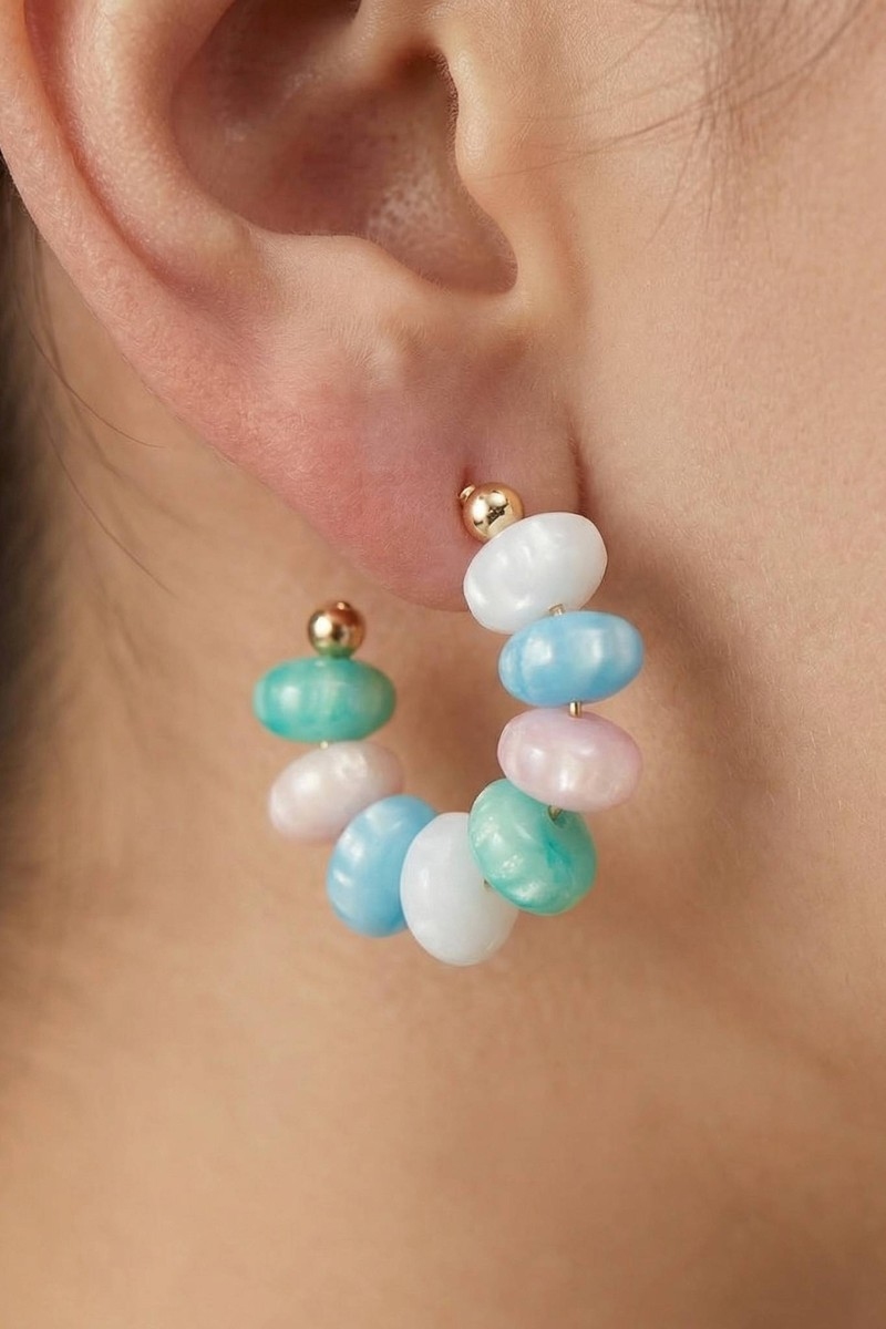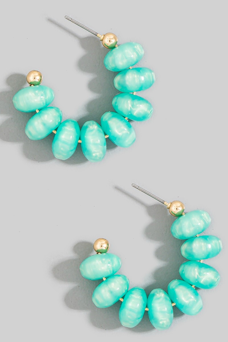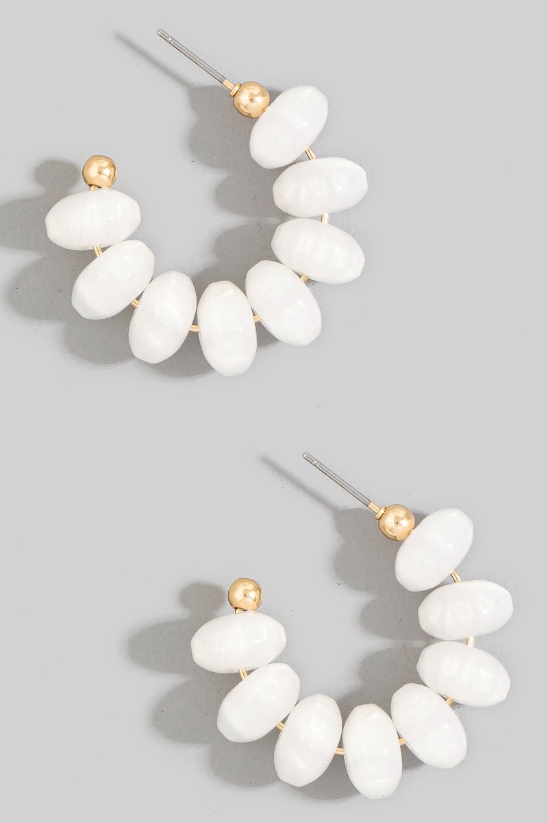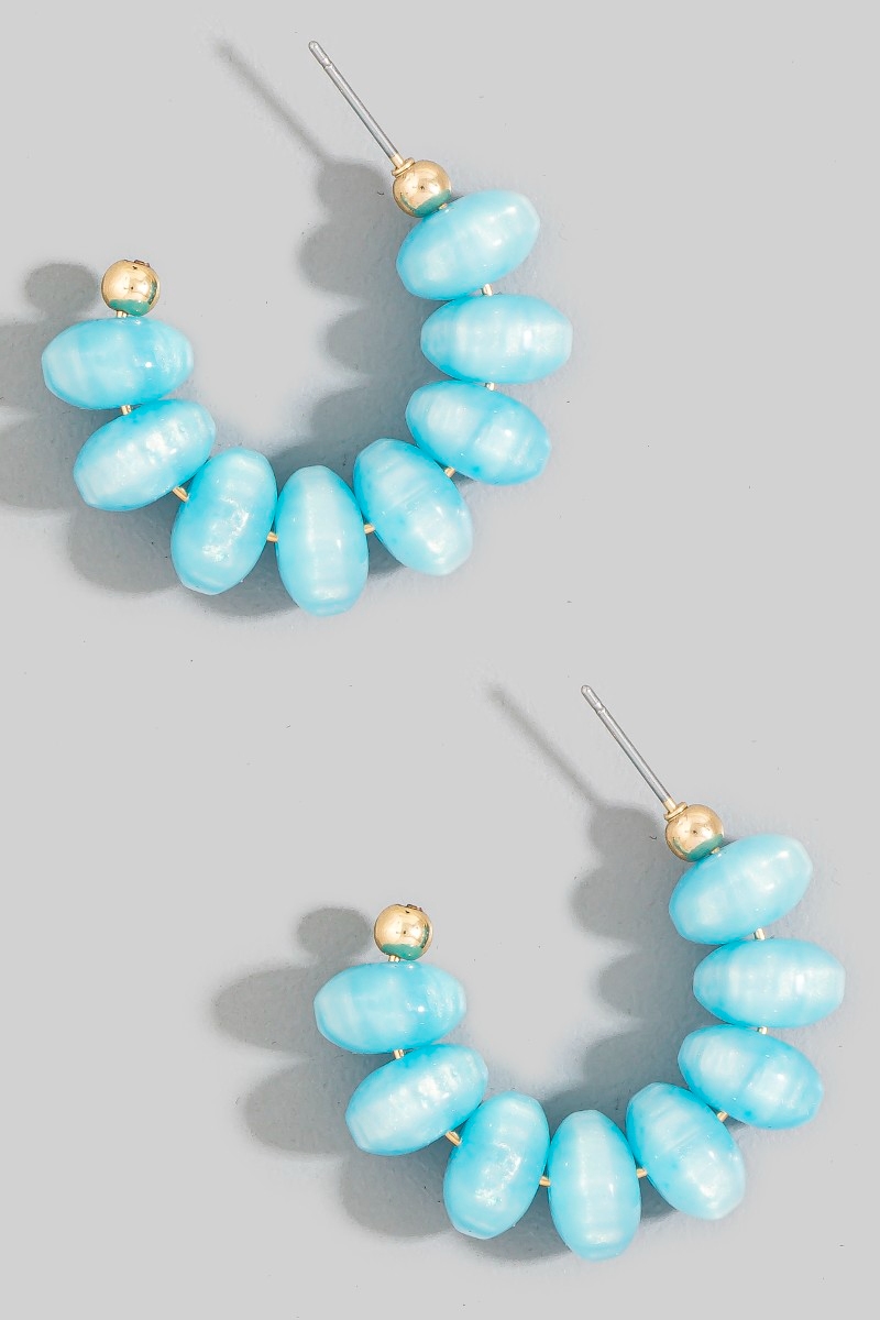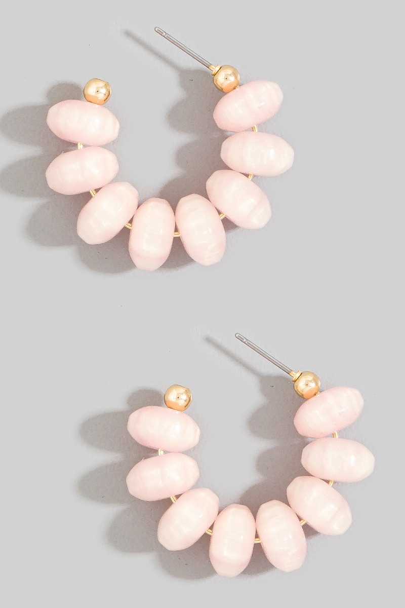 • This pair of hoop earrings brings a luxurious chunky oval bead style. Revel in the intricate design that effortlessly distinguishes this pair of hoop earrings, making it a statement piece.