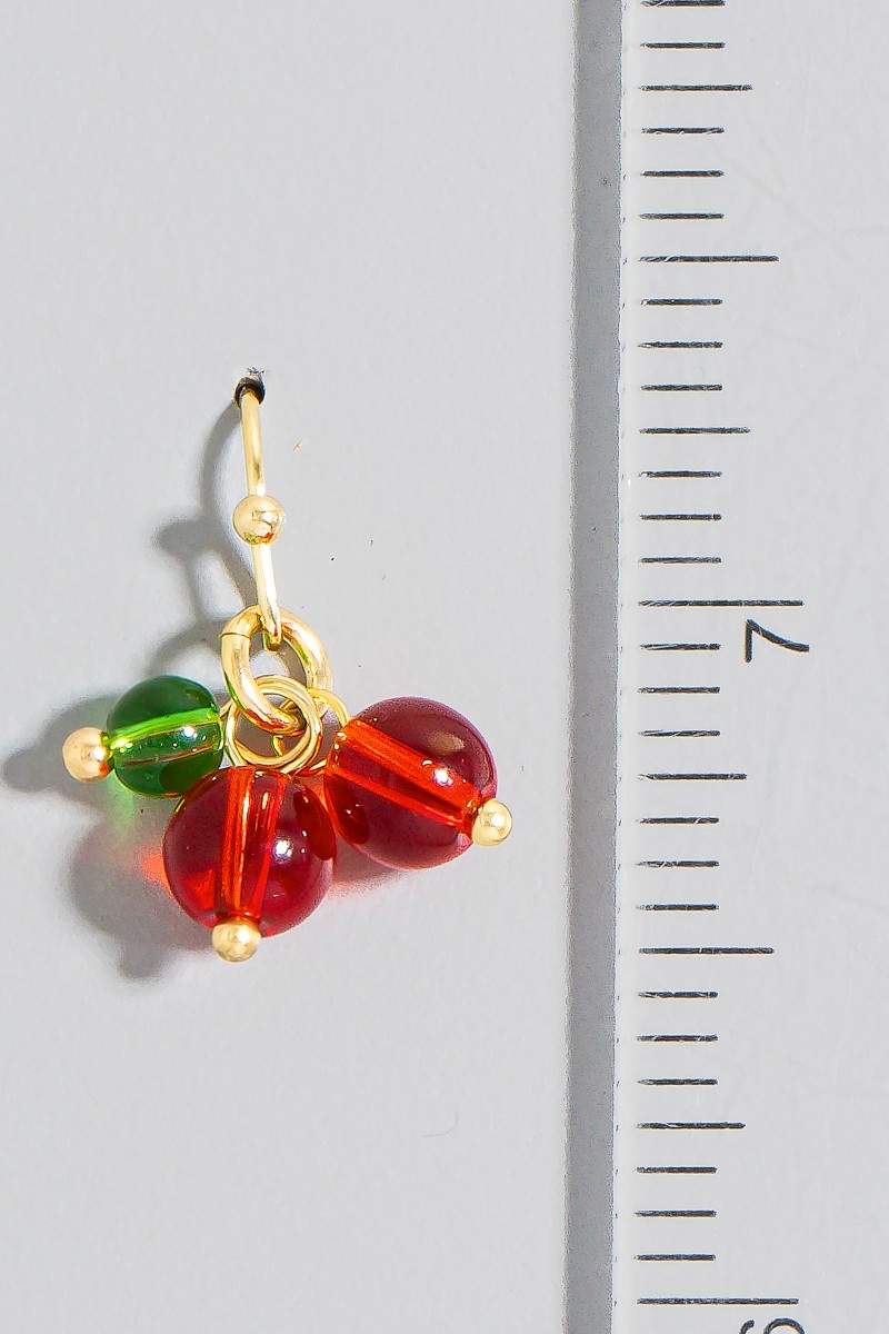 - This pair of dangle earrings adds a modern glass beaded cherry style. Celebrate the art of accessorizing with this piece that effortlessly encapsulates modern trends.
