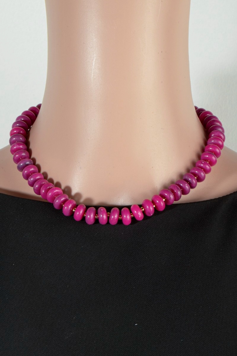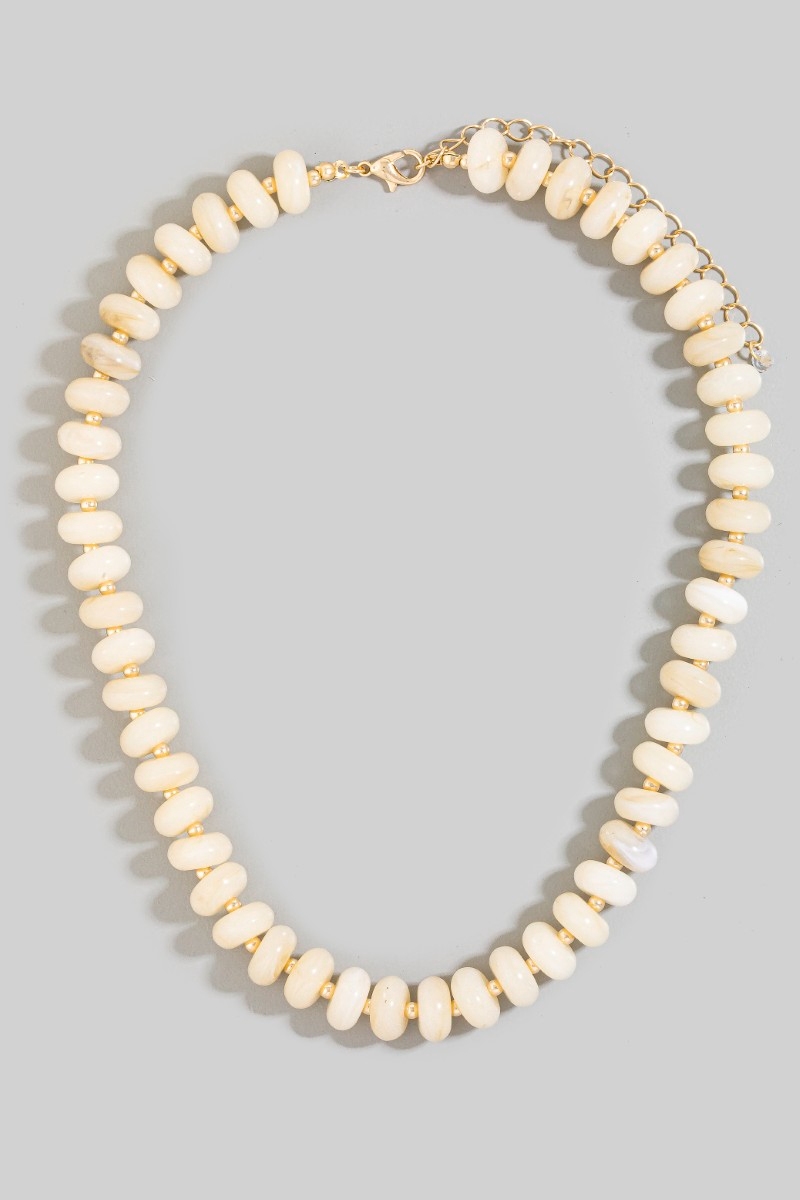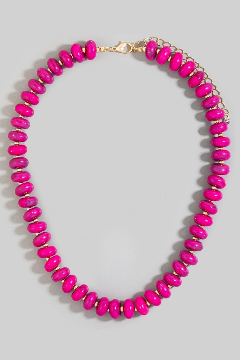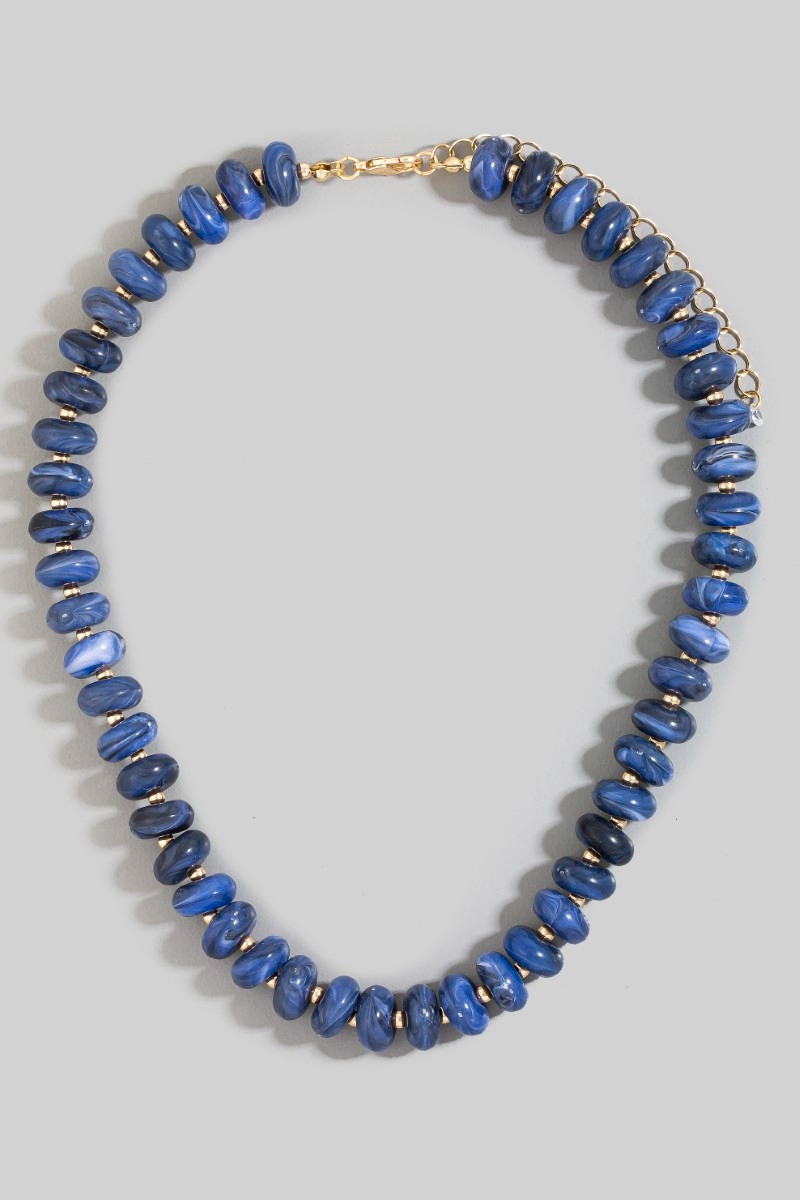 - This necklace features a fashionable marble resin disc beaded style. Indulge in the artistry of accessorizing with this unique piece.