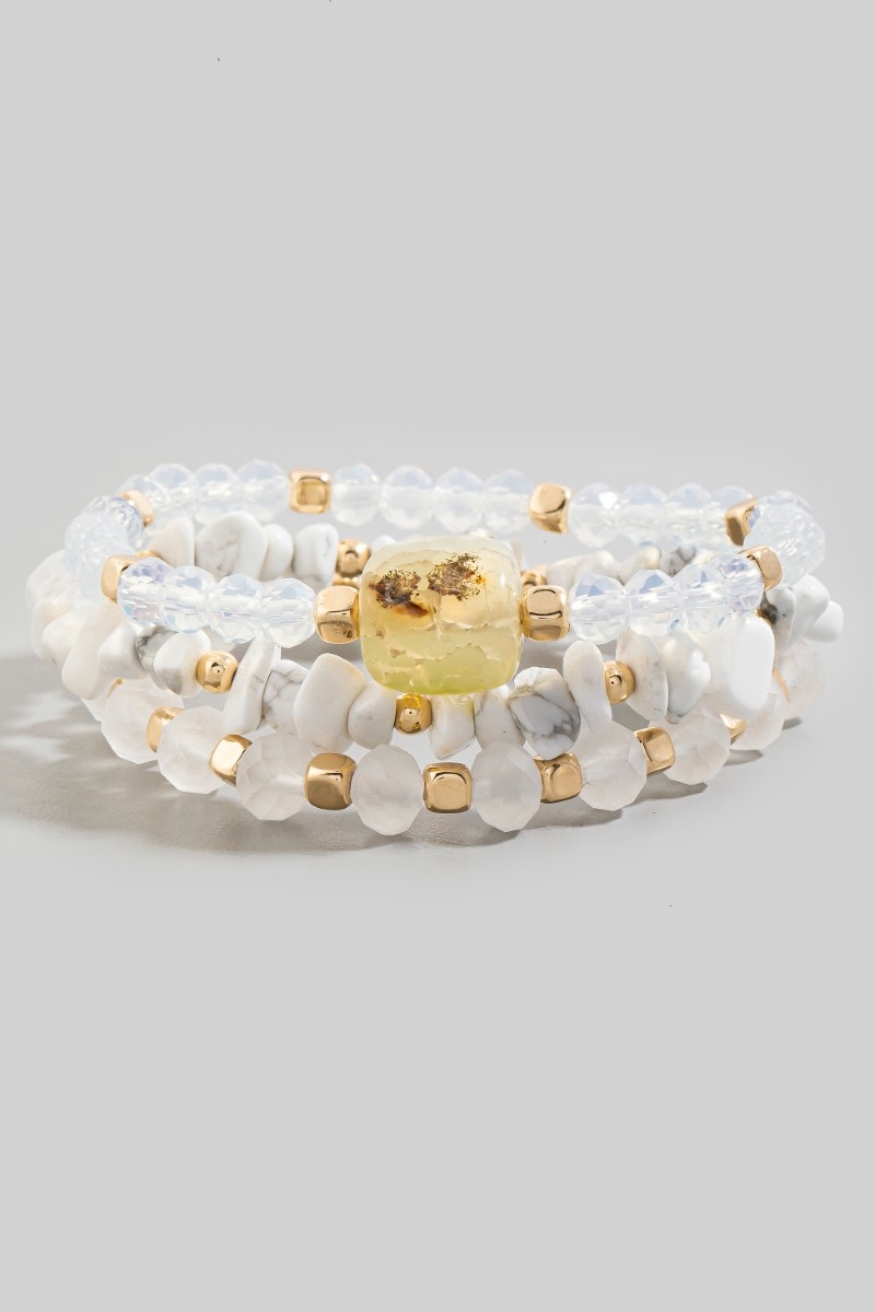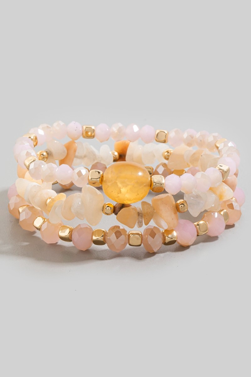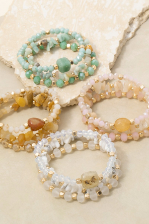 - This bracelet showcases a timeless mixed chip stone and faceted beads set style. Witness the transformative power of accessories as this piece effortlessly redefines your fashion narrative.