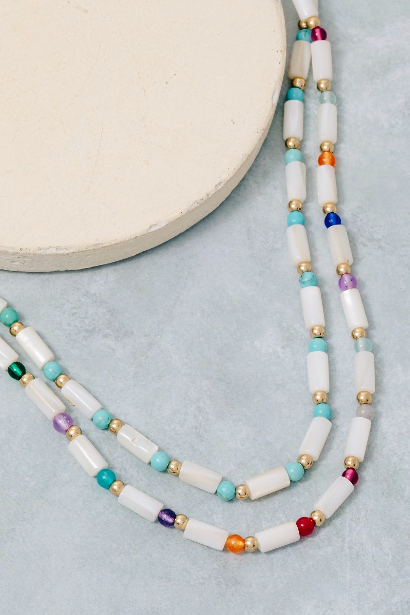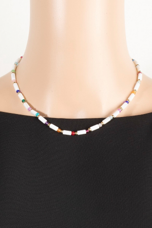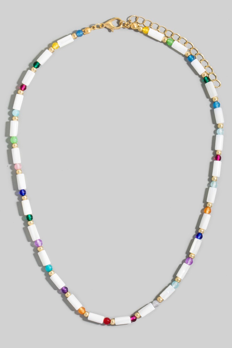 • This necklace introduces a unique mixed cylinder and ball beaded style. Discover the perfect balance of functionality and fashion.