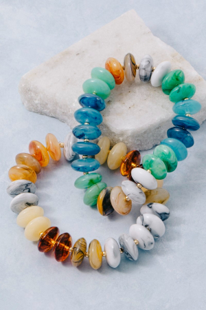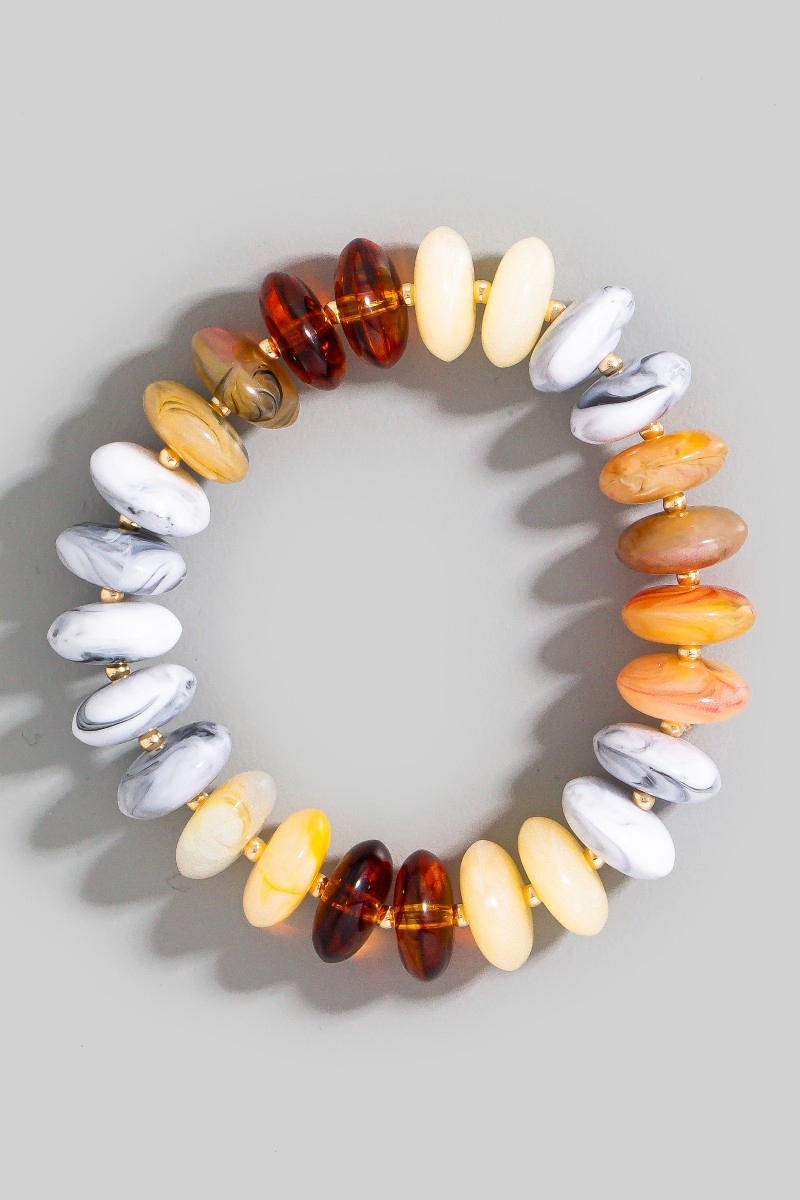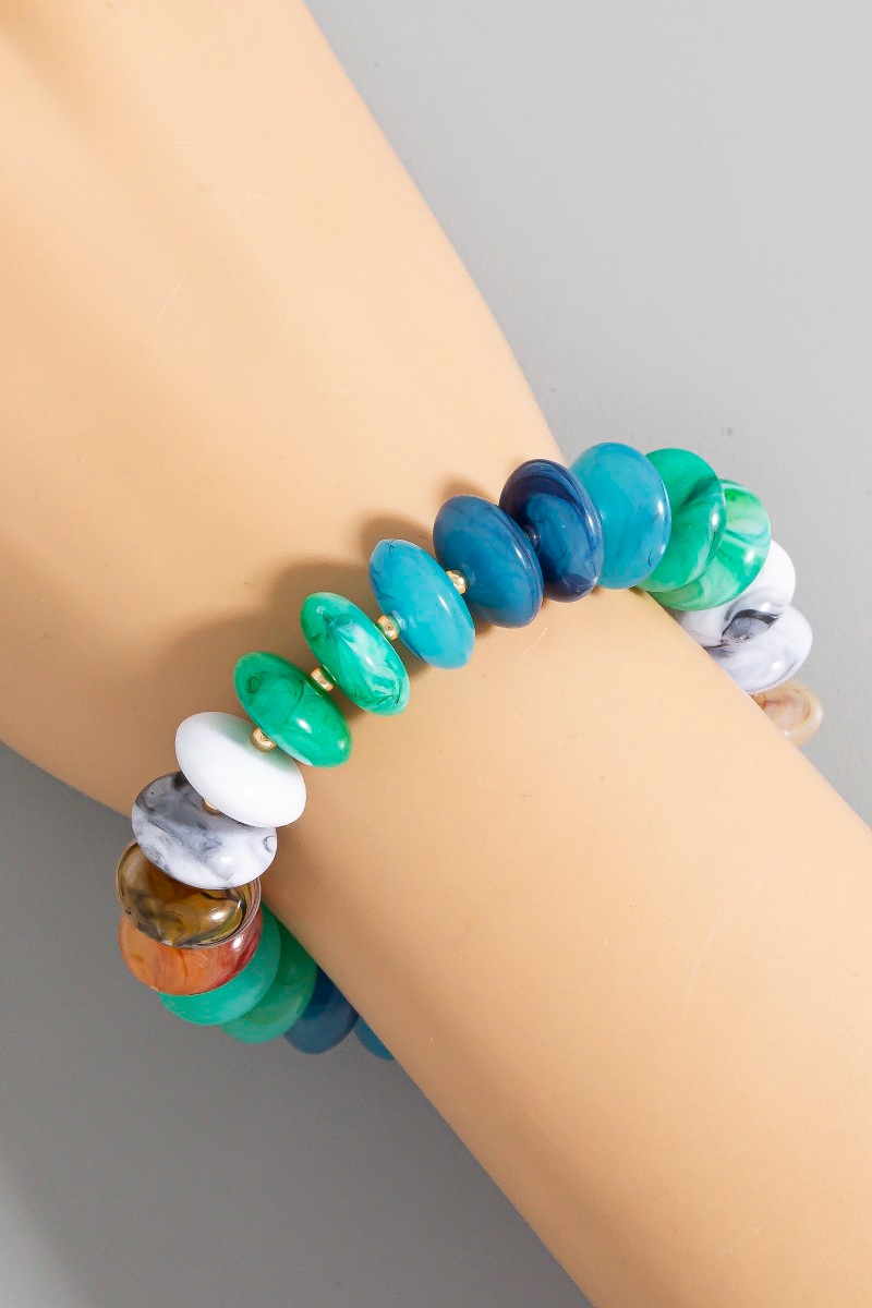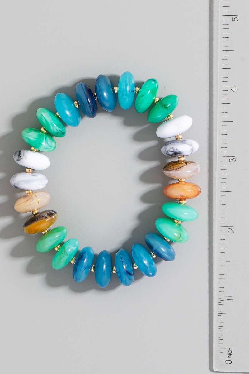 • This bracelet brings a unique mixed marble resin disc beads style. Elevate your ensemble with this bracelet that effortlessly captures the essence of refined fashion.