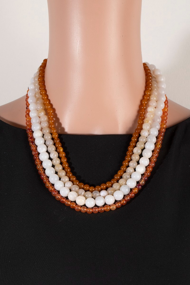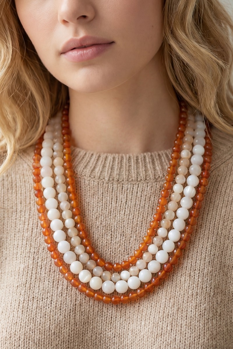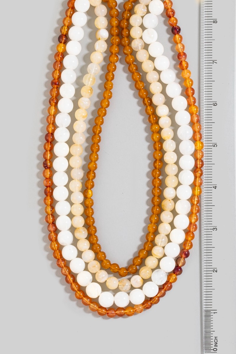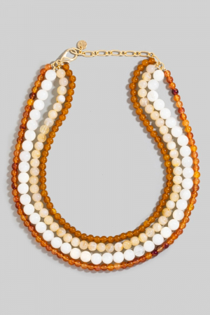 Marble Resin And Metallic Beaded Layered Necklace