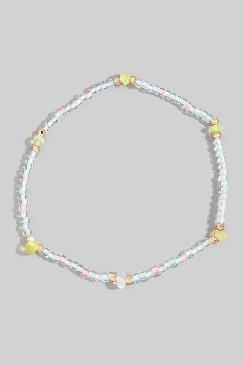 • This bracelet brings a stunning opal stone glass beads style. Immerse yourself in the details of design, as this bracelet effortlessly becomes a conversation starter.