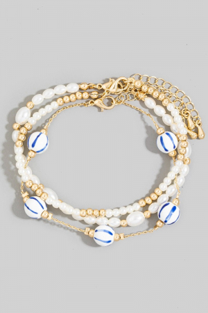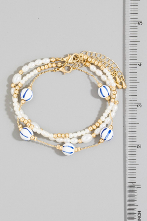 Pearl Beaded And Seashell Charms Stretch Bracelet Set