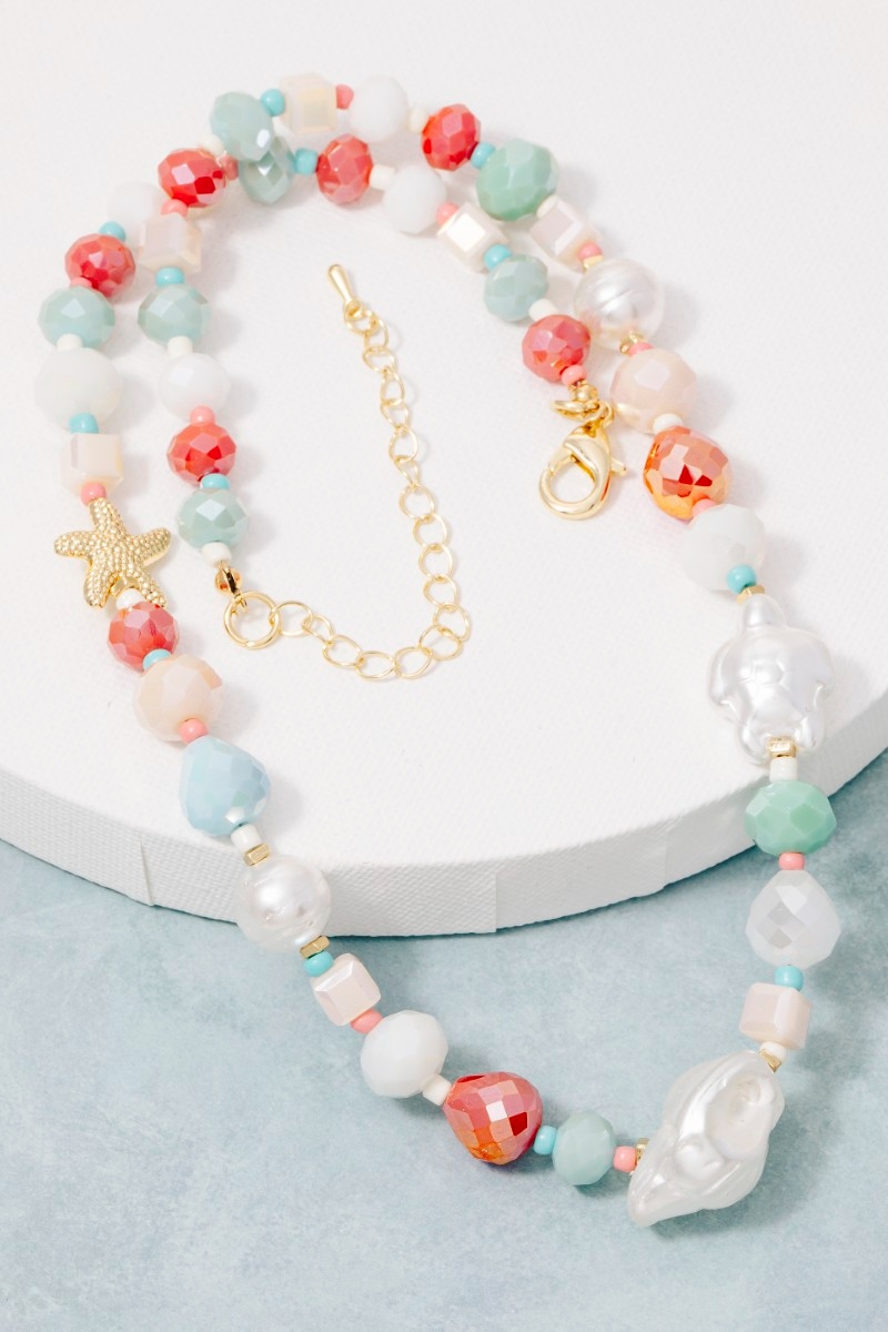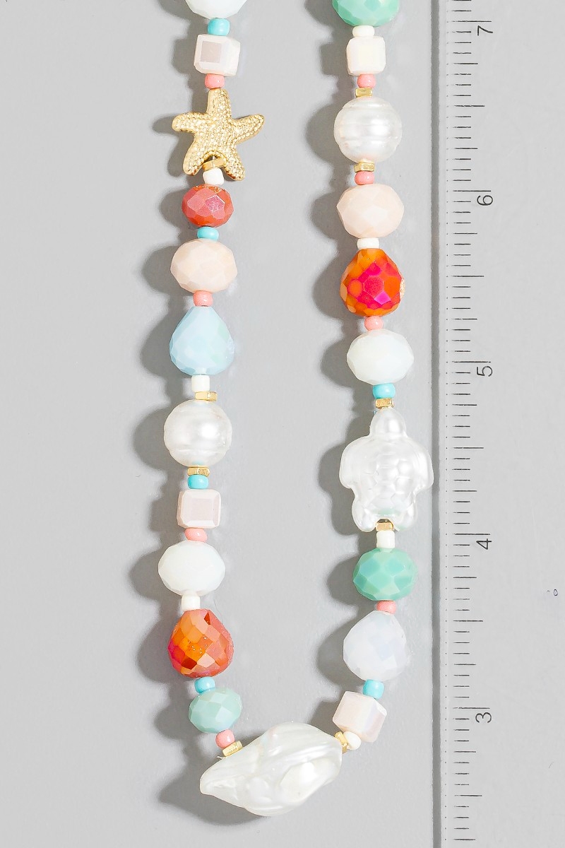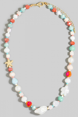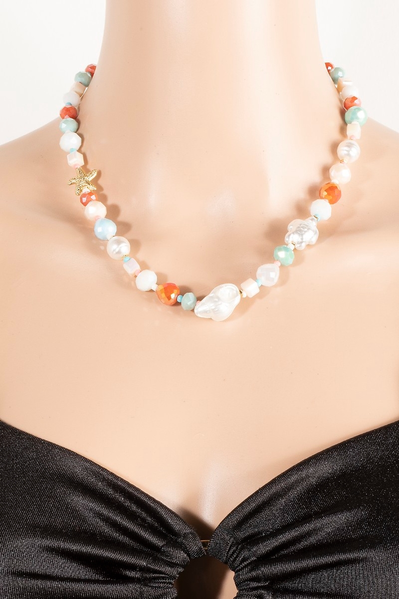 • This necklace introduces a unique pearl and starfish mixed beaded style. Elevate your ensemble with this necklace that effortlessly captures the essence of refined fashion.