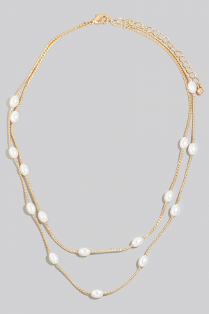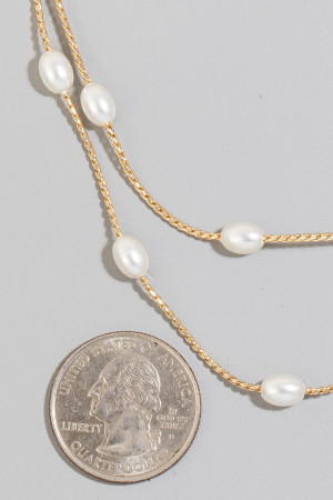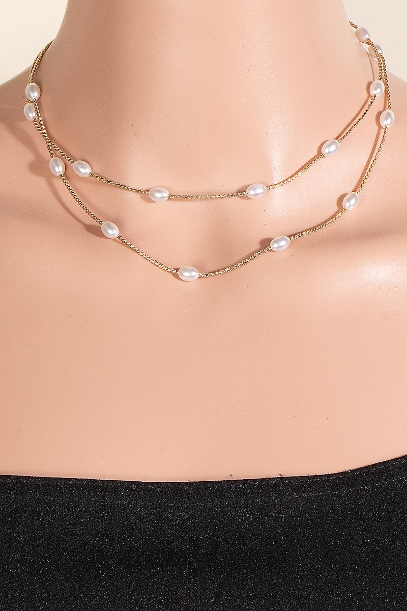 - This chain necklace displays a fashionable pearl station beaded layered rope style. Unveil modern elegance with this subtly intricate chain necklace.