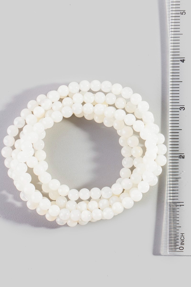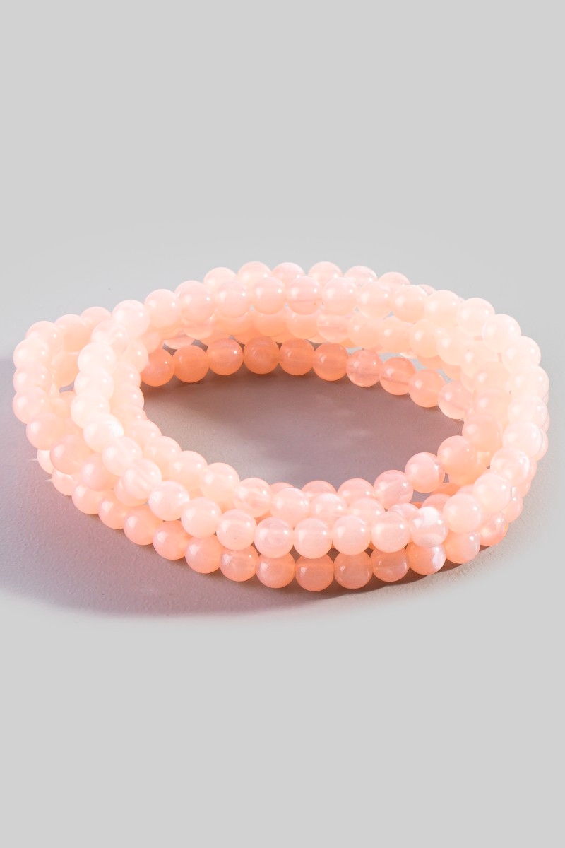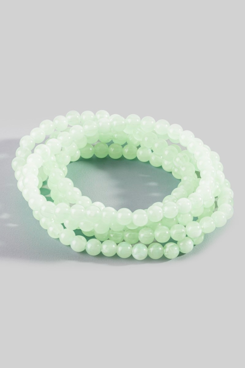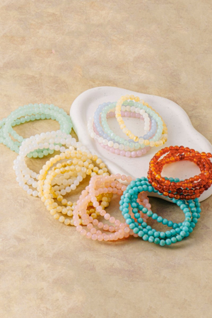 - This bracelet brings a unique polished acrylic beaded elastic set style. Experience refined sophistication with this understated yet stylish piece.