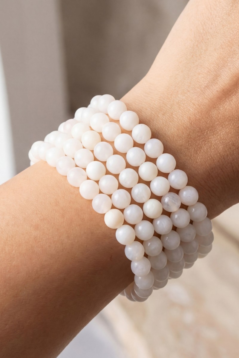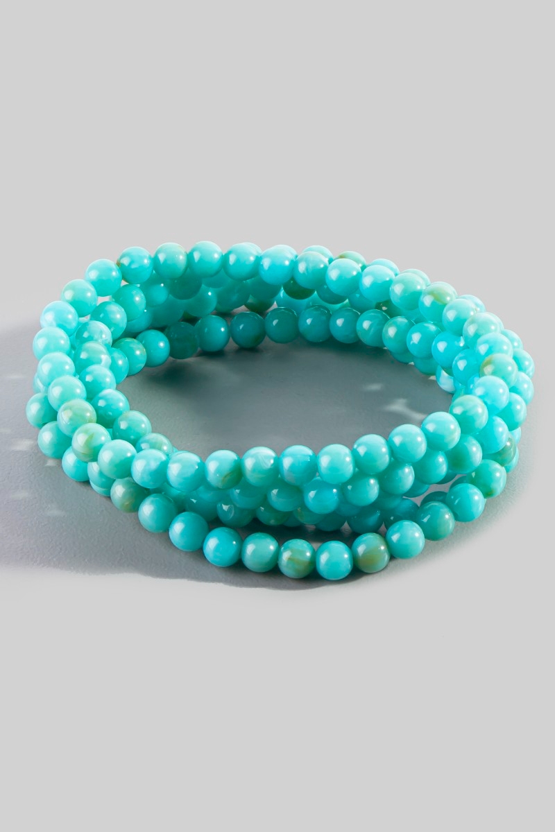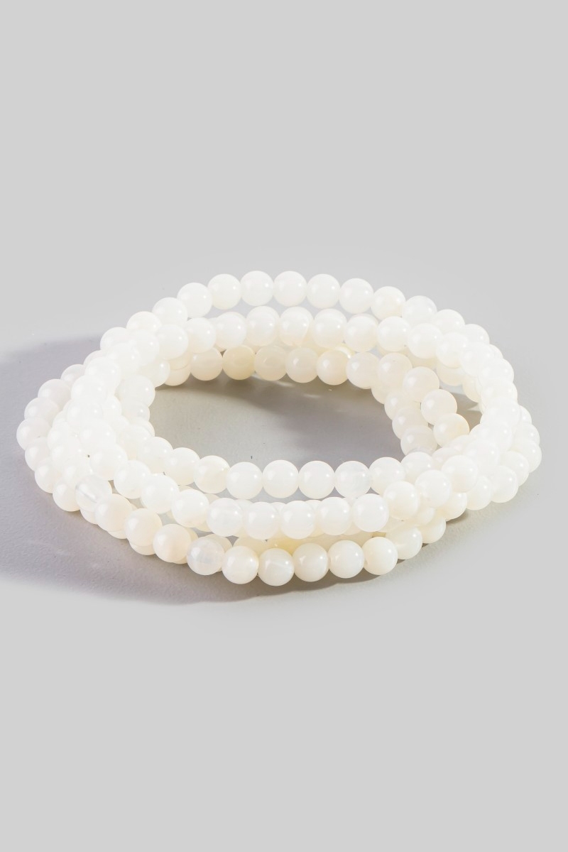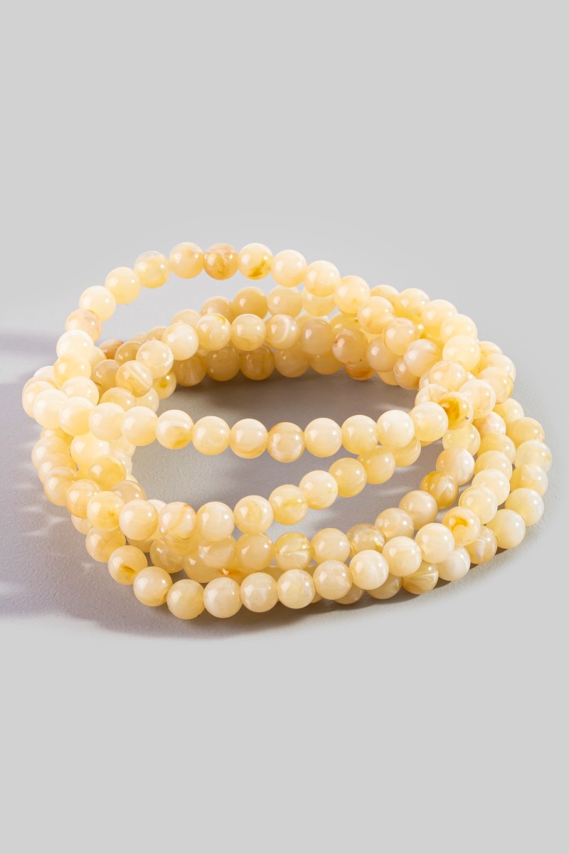 - This bracelet brings a unique polished acrylic beaded elastic set style. Experience refined sophistication with this understated yet stylish piece.