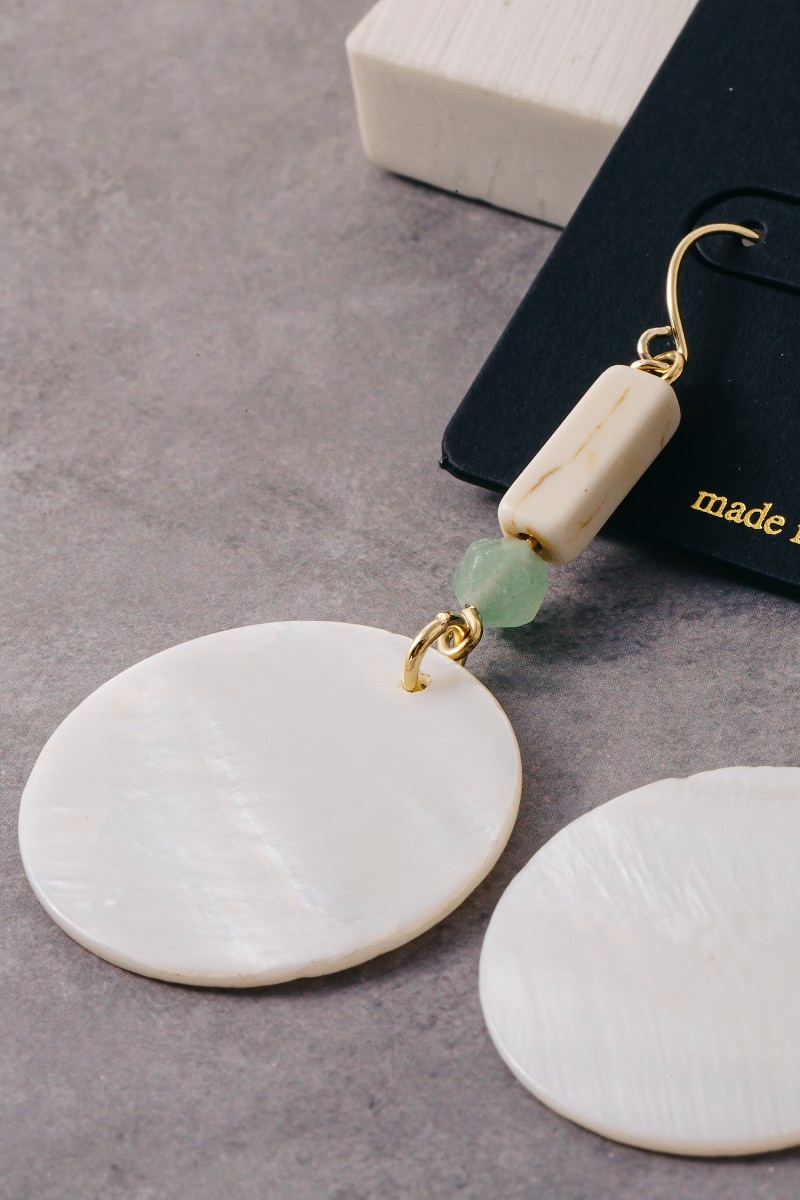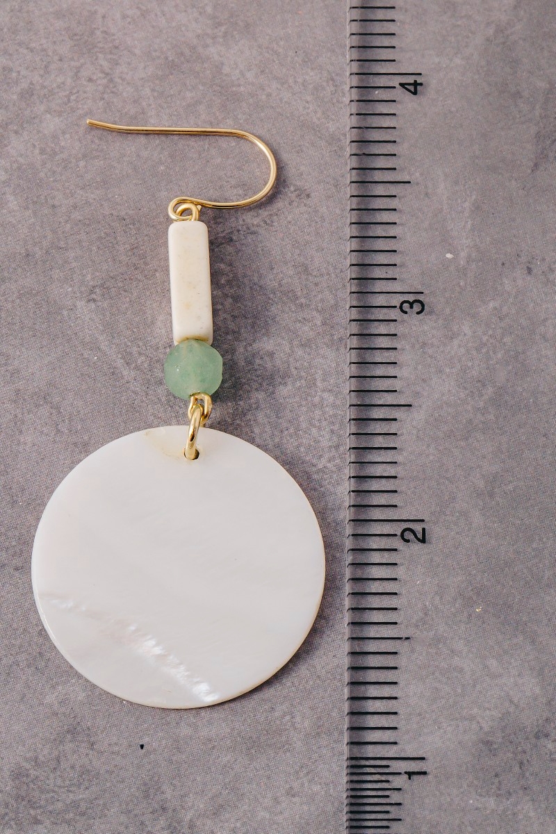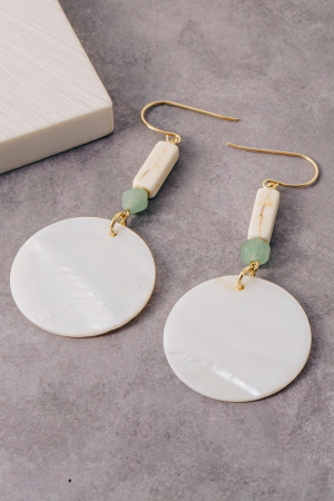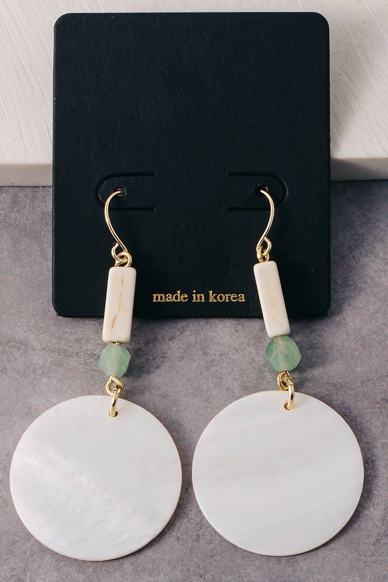 - This pair of dangle earrings adds a modern sea shell disc and gem bead style. Savor the allure of detailed craftsmanship in this exquisite pair of dangle earrings.