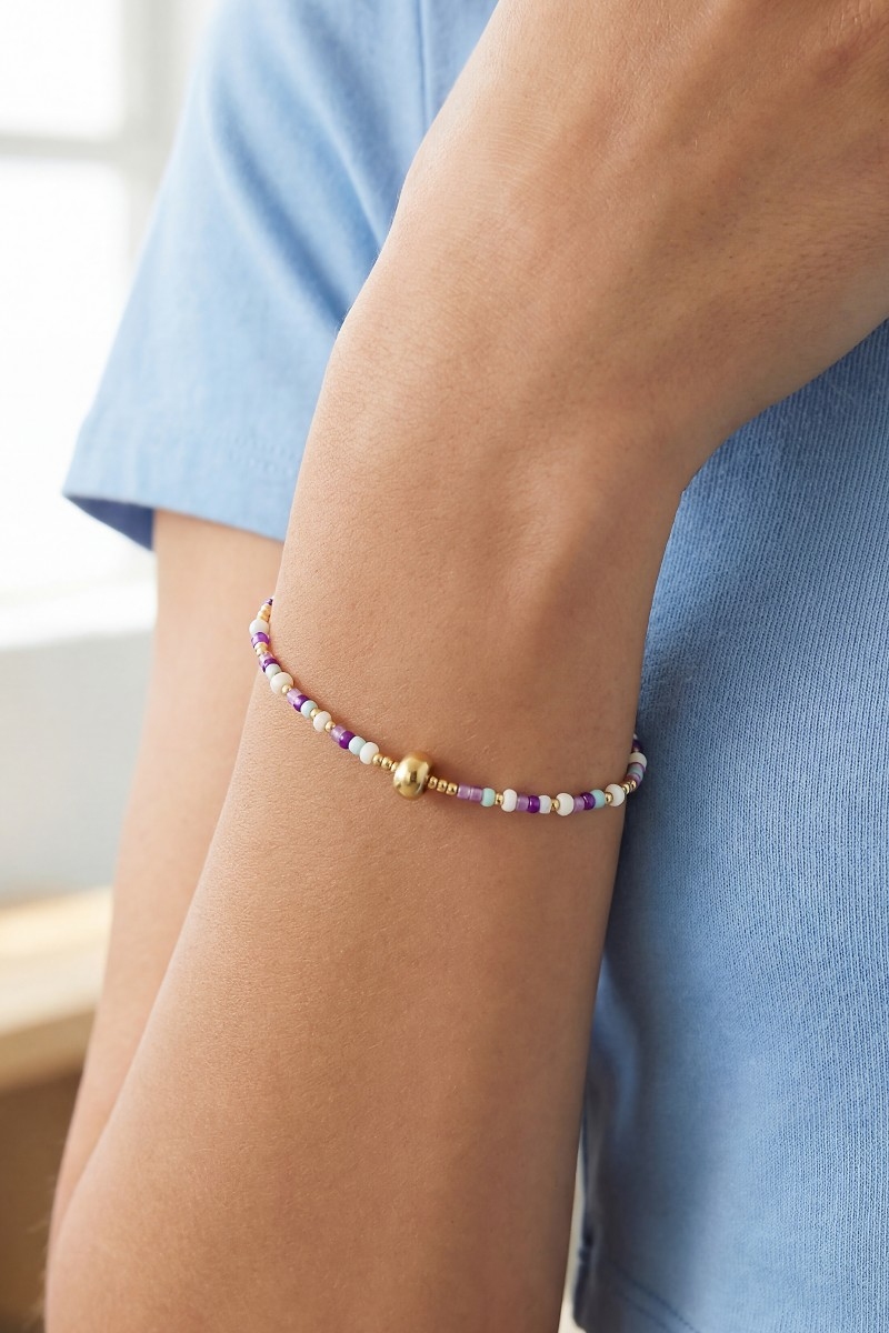 • This bracelet features a fashionable stainless steel with glass beads style. Elevate your ensemble with this bracelet that effortlessly captures the essence of refined fashion.