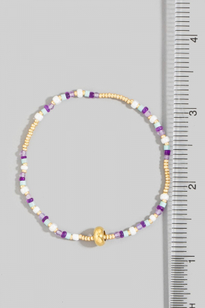 Mixed Pearl And Metallic Beaded Elastic Bracelet