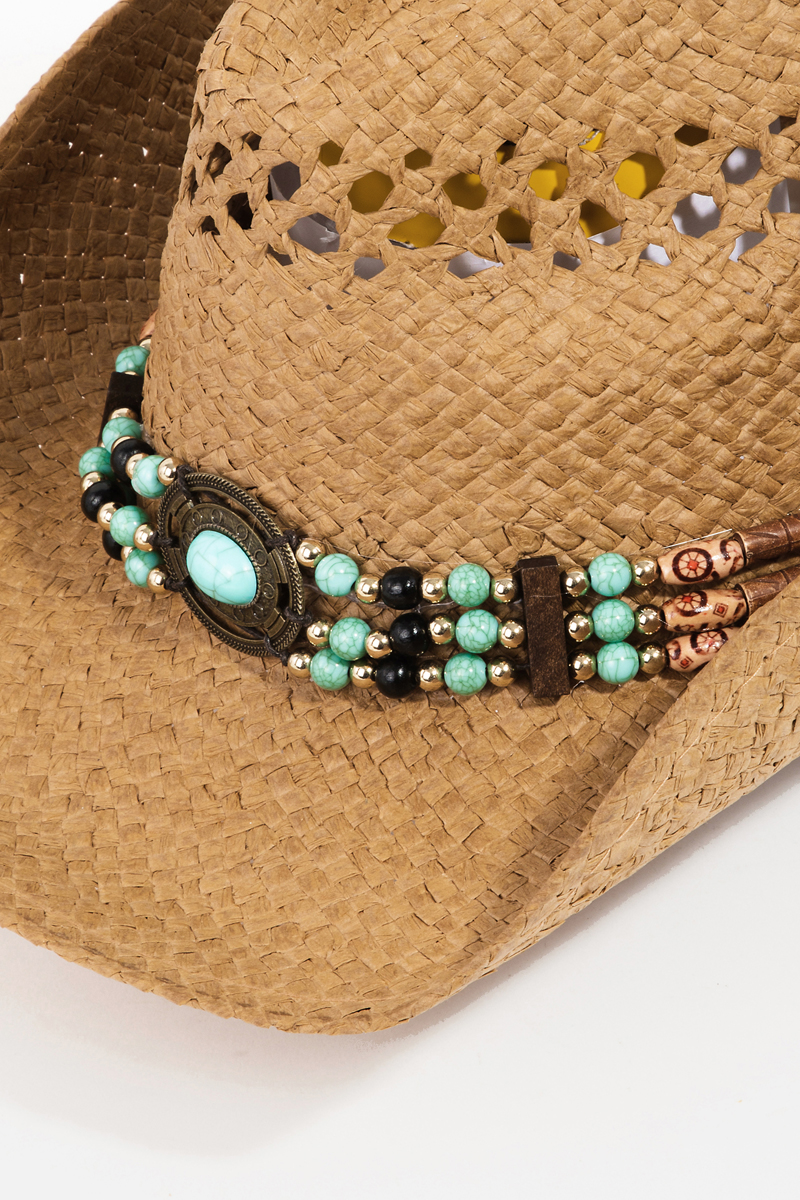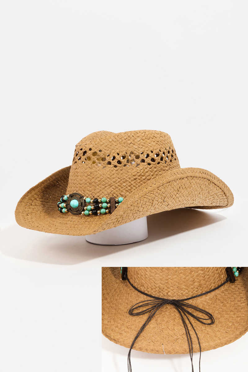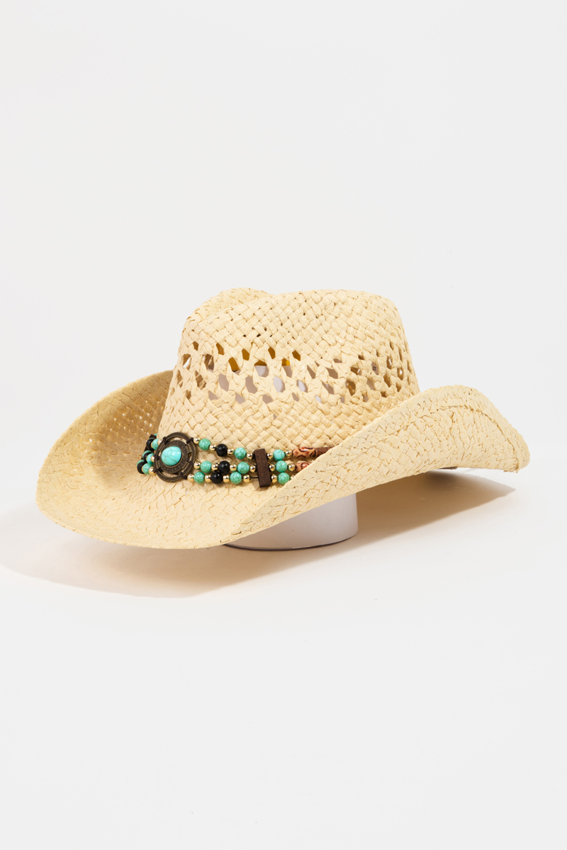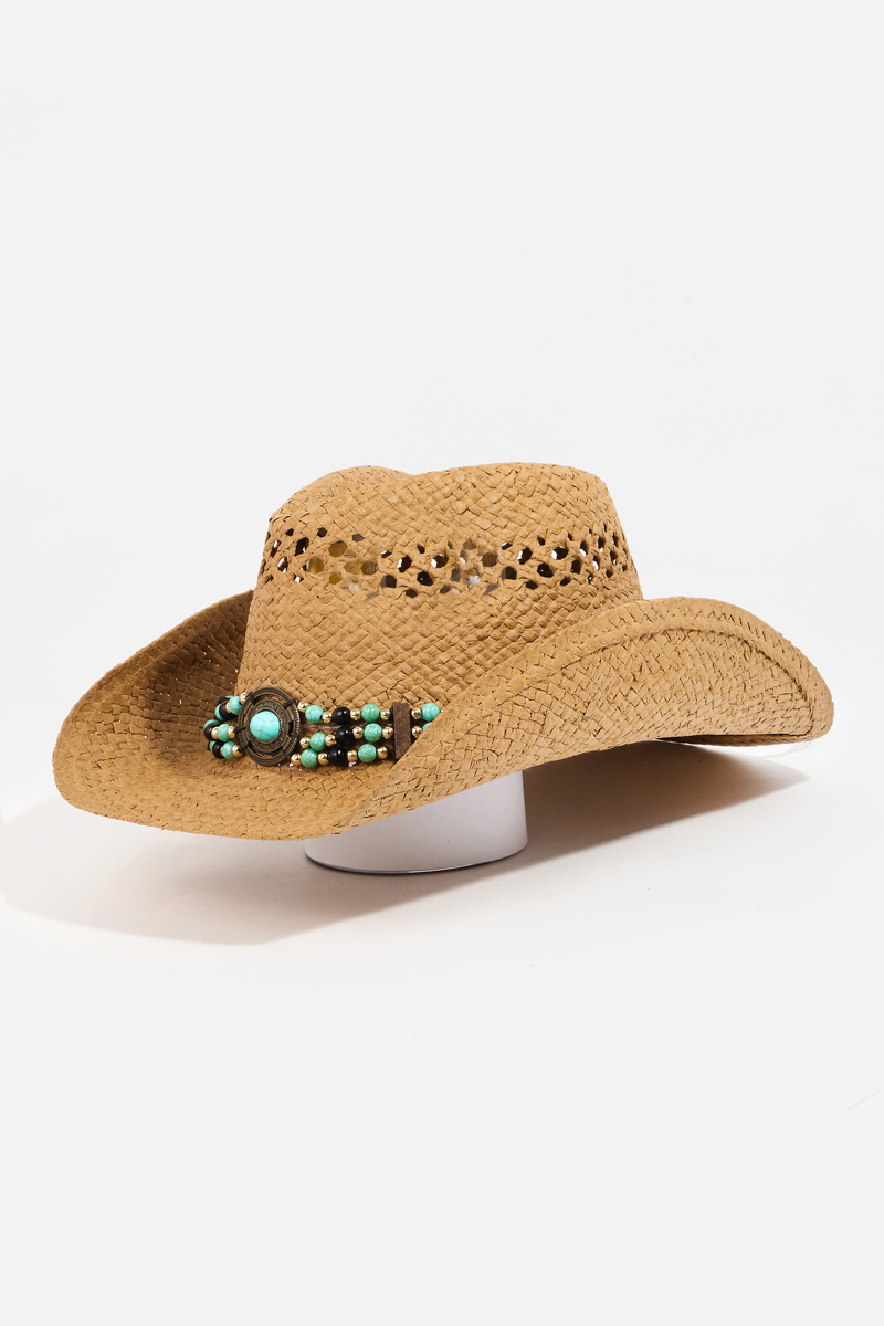 - This fedora hat brings a luxurious turquoise beaded band paper braided style. Experience a subtle blend of modernity and classic charm as this fedora hat effortlessly adorns your ensemble.