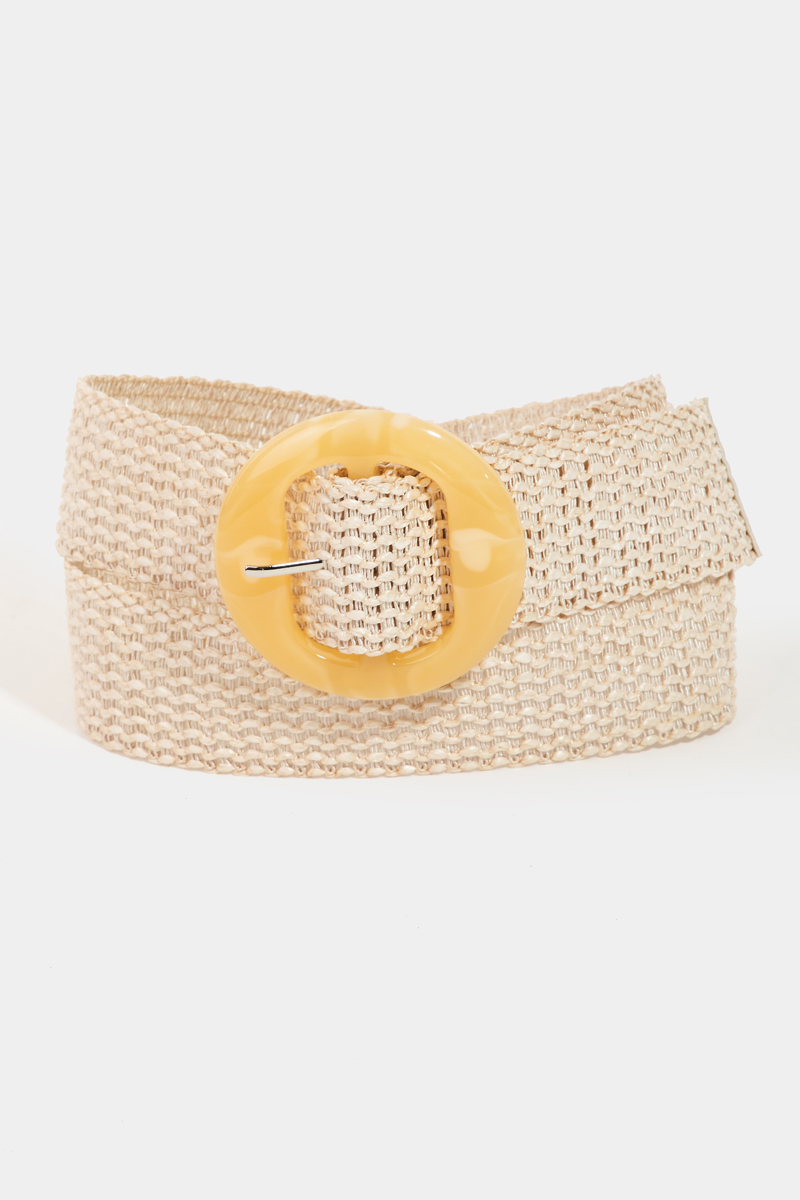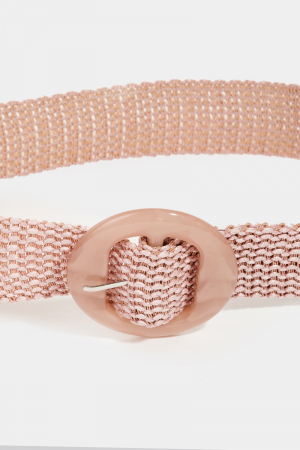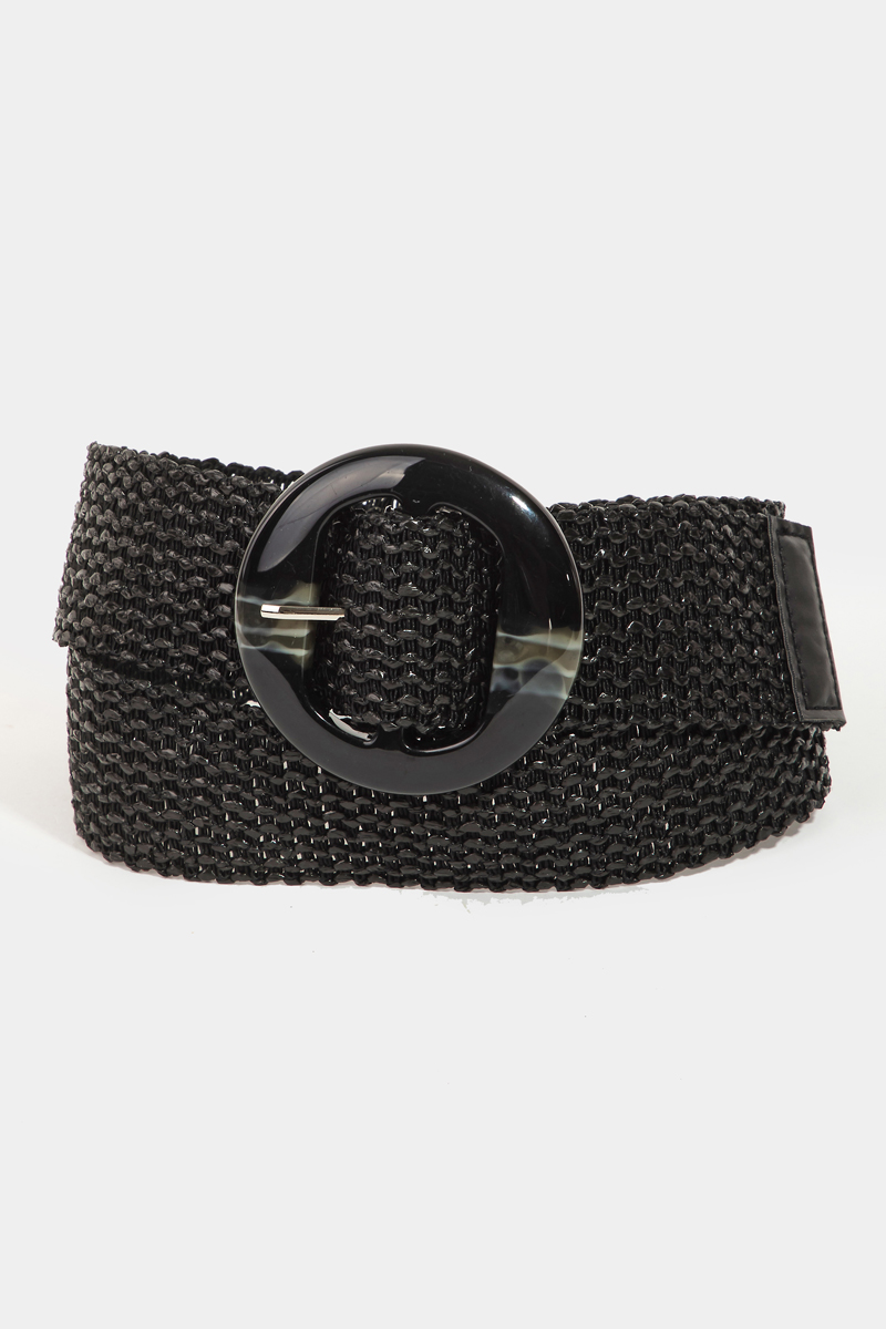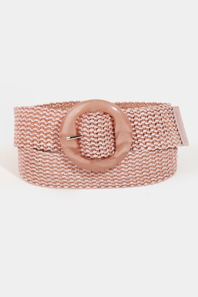 - This braided belt features a fashionable acetate buckle elastic style. Celebrate the art of accessorizing with this piece that effortlessly encapsulates modern trends.