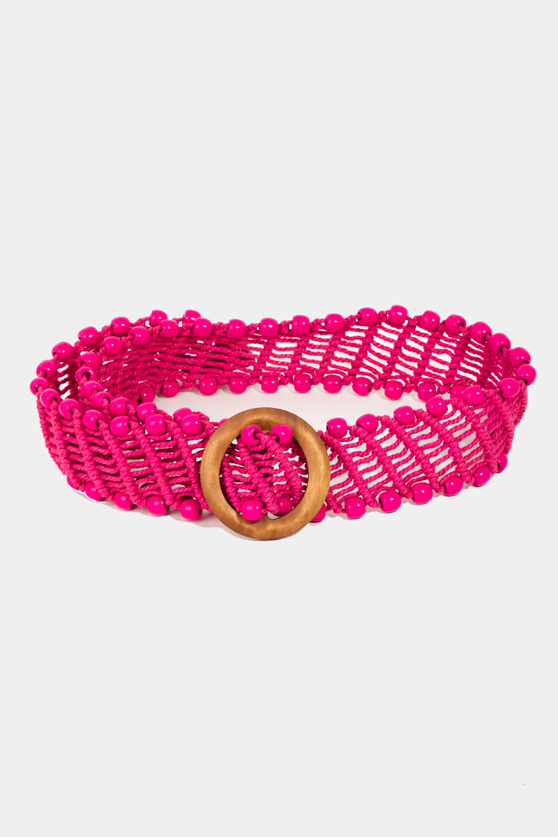 • This braided belt displays a vibrant beaded trim style. Delight in the intricate details that make this braided belt an essential element in expressing your fashion identity.