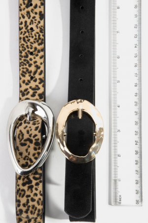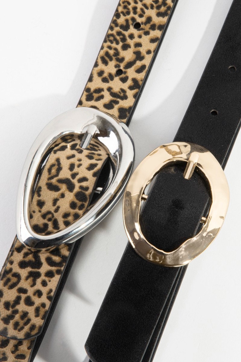 - This belt set introduces a unique black and leopard print oval buckle vegan leather style. Delight in the intricate details that make this belt set an essential element in expressing your fashion identity.