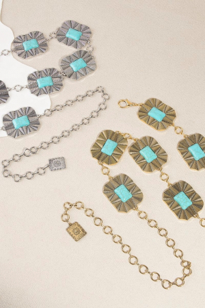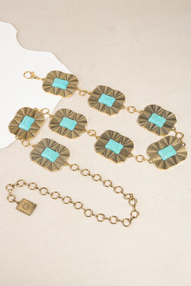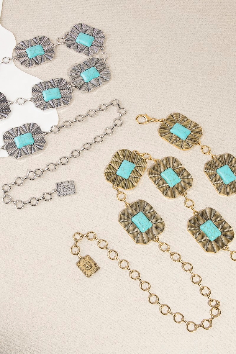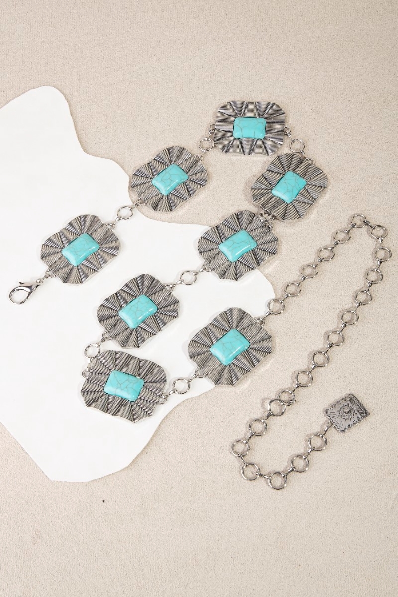 Turquoise Stone Spiral Concho Western Chain Belt
