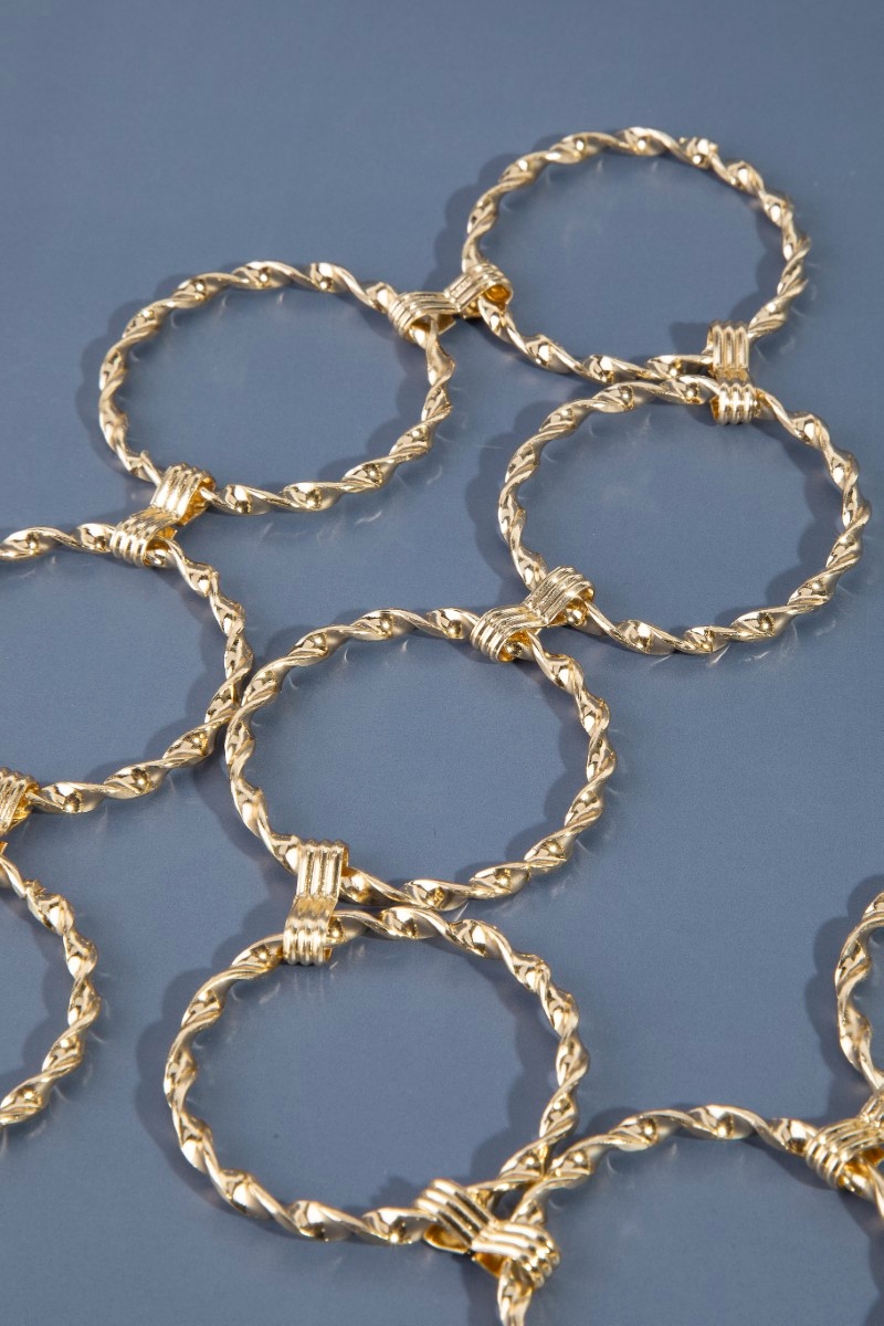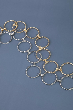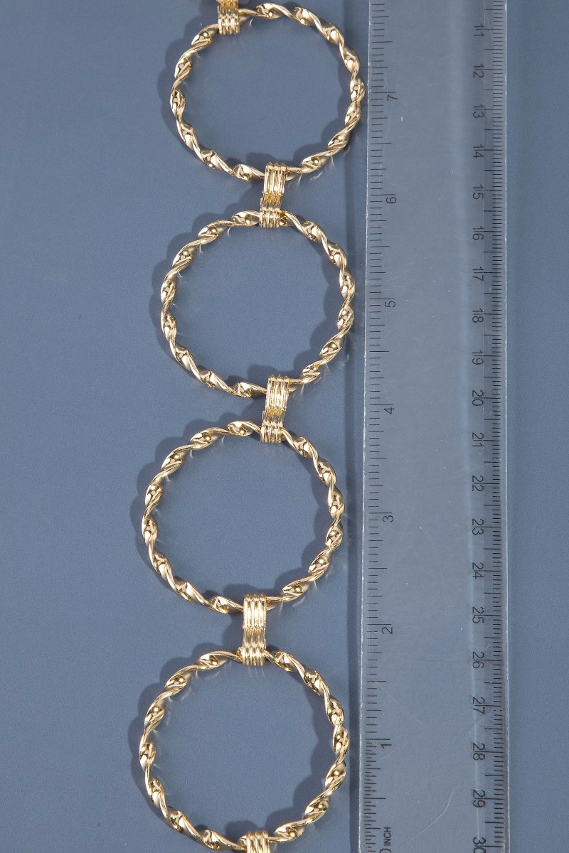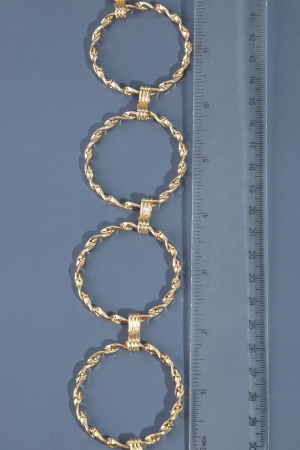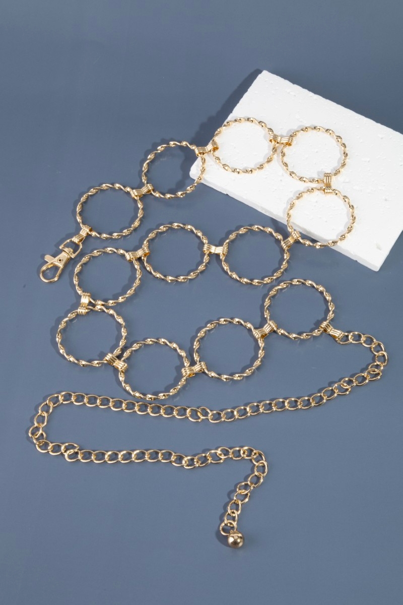 • This chain belt displays a vibrant metallic braided hoop style. Explore a refined sense of style with this chain belt, seamlessly elevating the chic factor of your look.