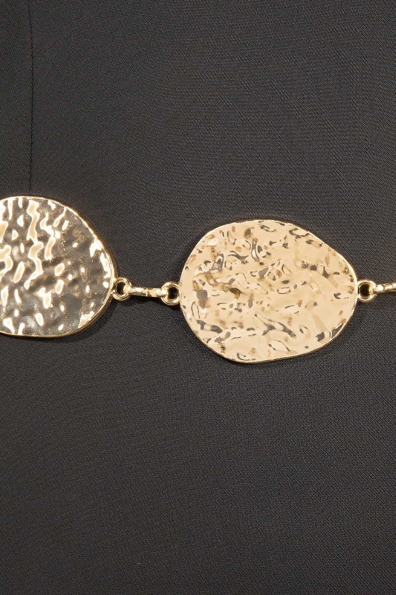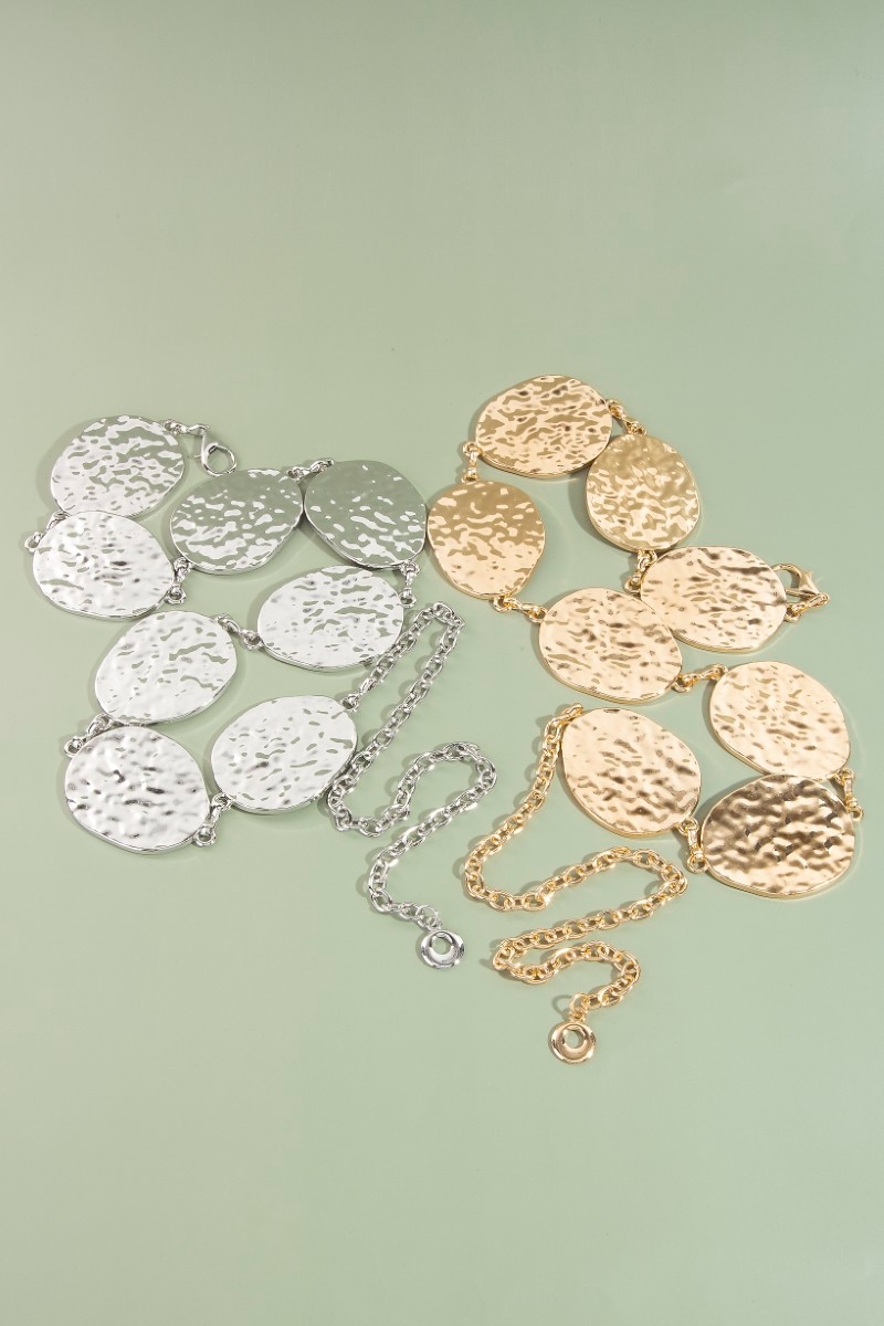 - This chain belt brings a stunning metallic hammered oval style. Immerse yourself in fashion finesse with this statement chain belt.