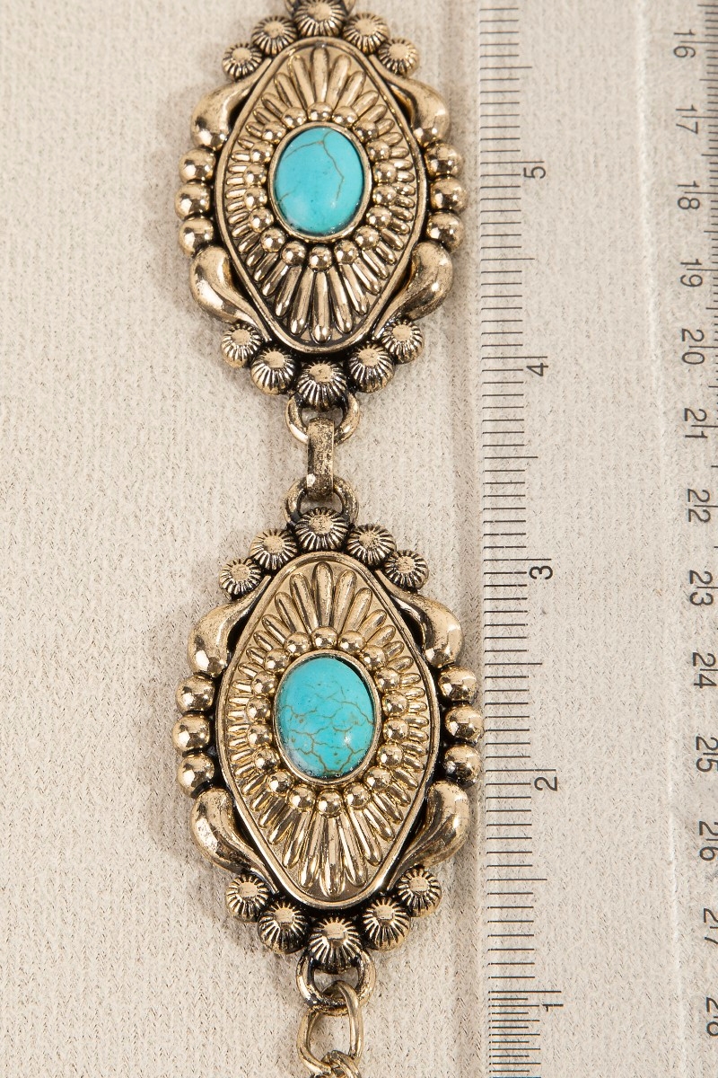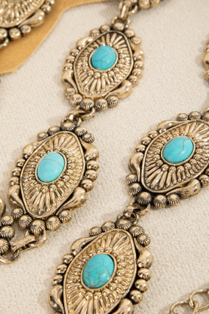 Turquoise Stone Spiral Concho Western Chain Belt