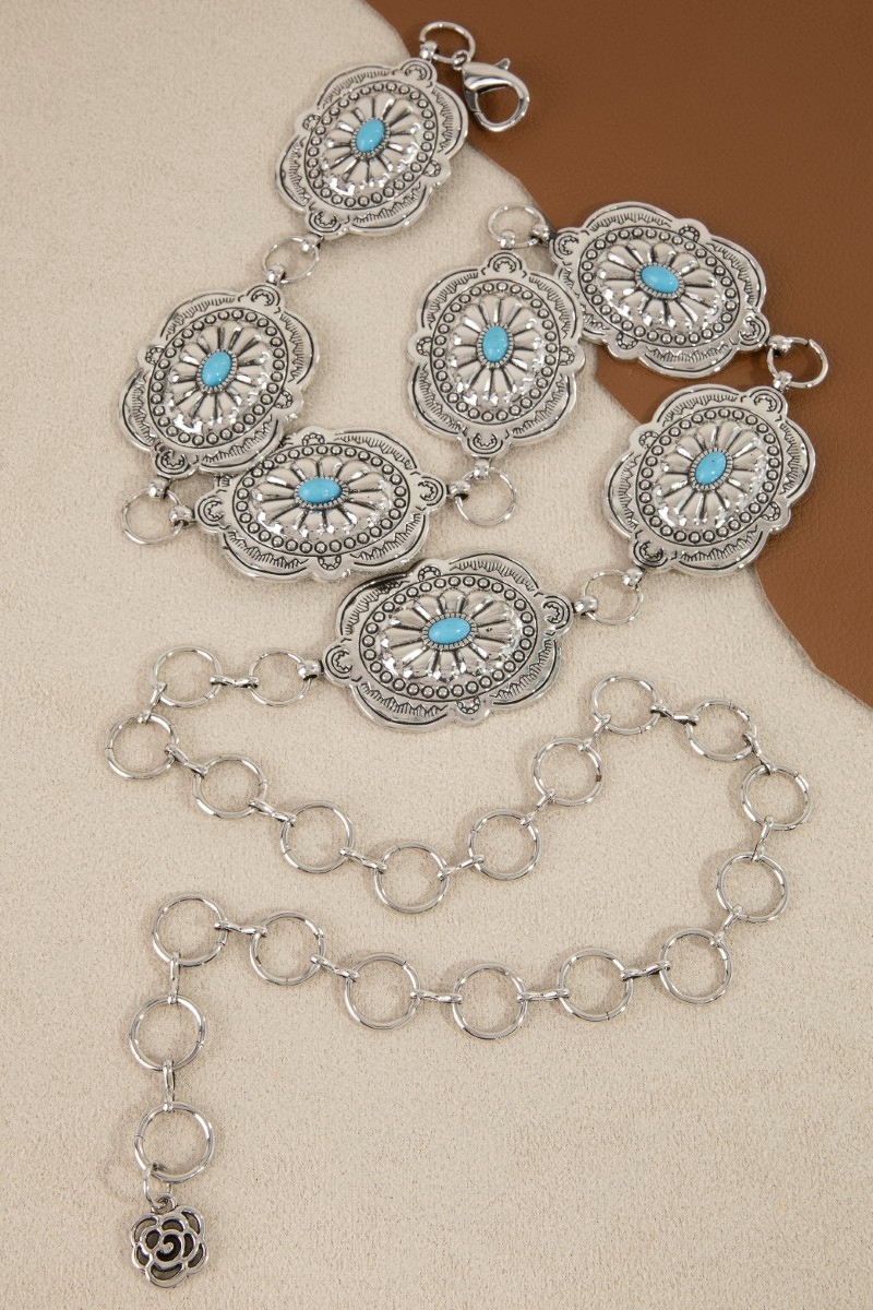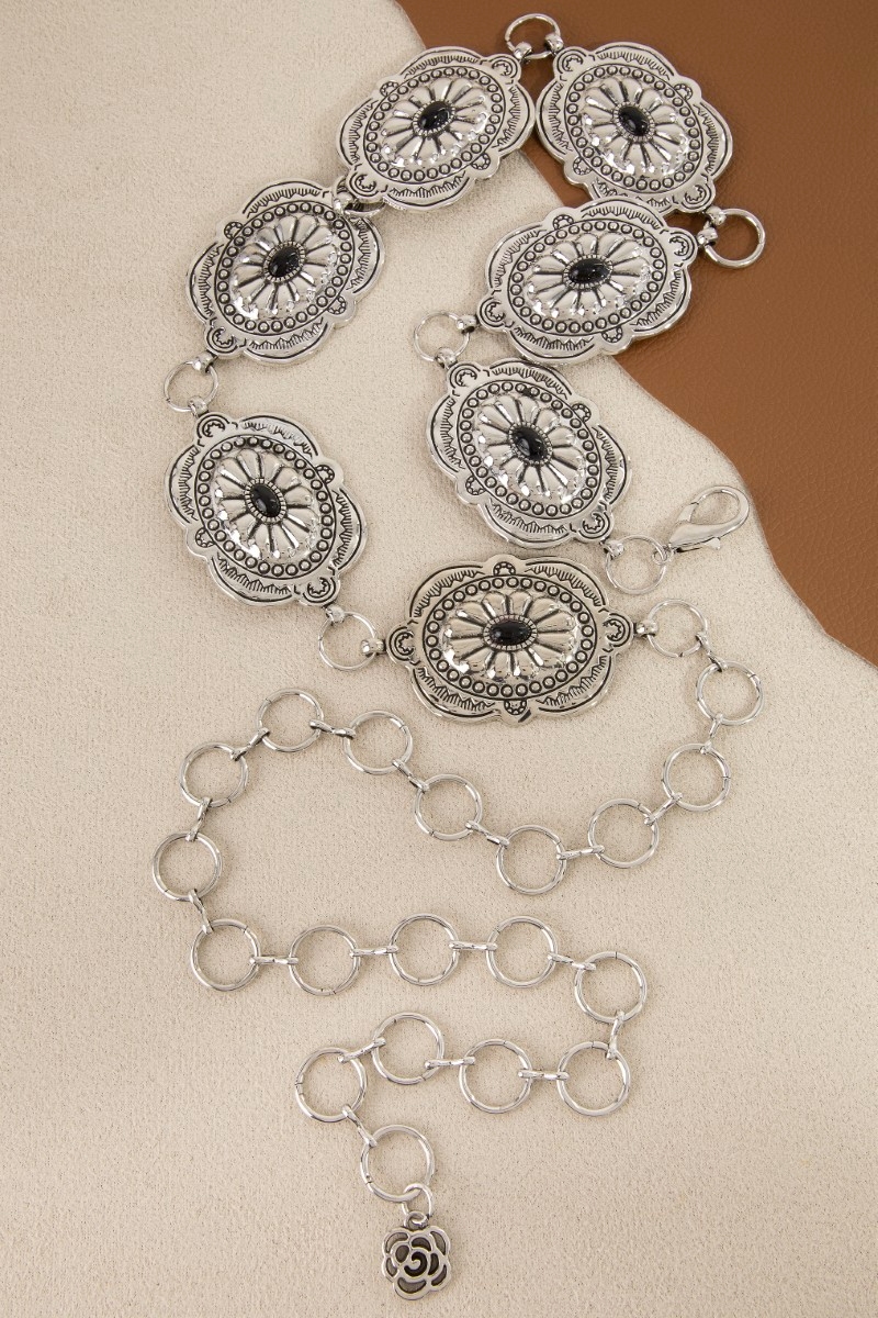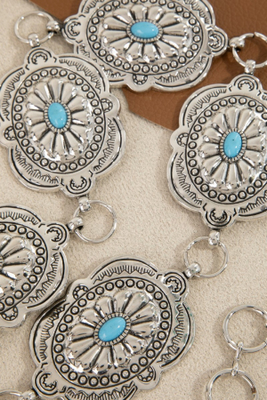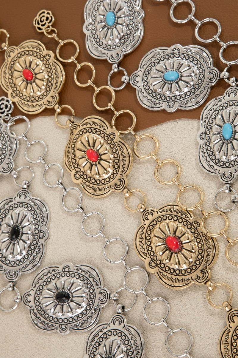 - This belt brings a stunning western concho chain link style. Explore a blend of classic charm and contemporary flair.