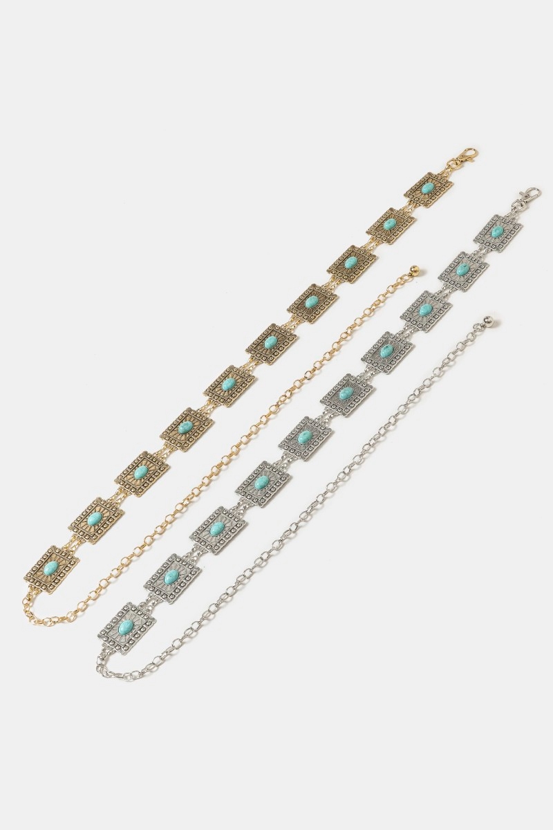 • This chain belt displays a vibrant western style concho rectangle style. Discover the perfect balance of functionality and fashion.