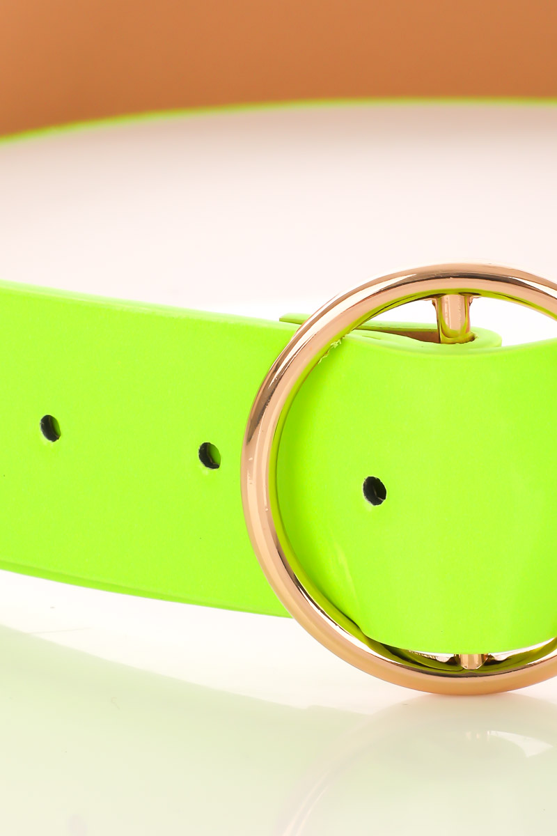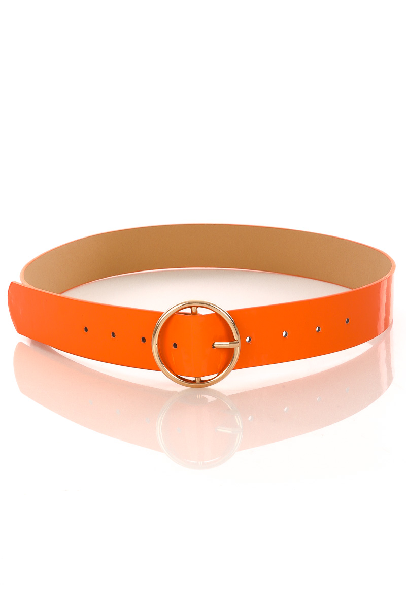 Hammered Circle Buckle Studded Vegan Leather Belt