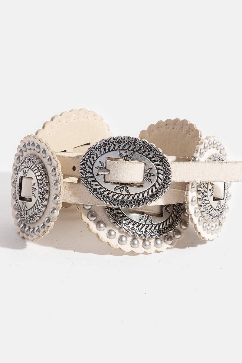 • This belt brings a unique intricate faux leather concho style. Celebrate individuality with this belt that effortlessly expresses your unique sense of style.