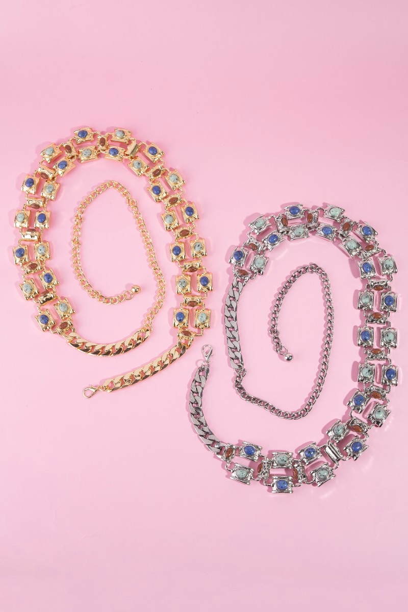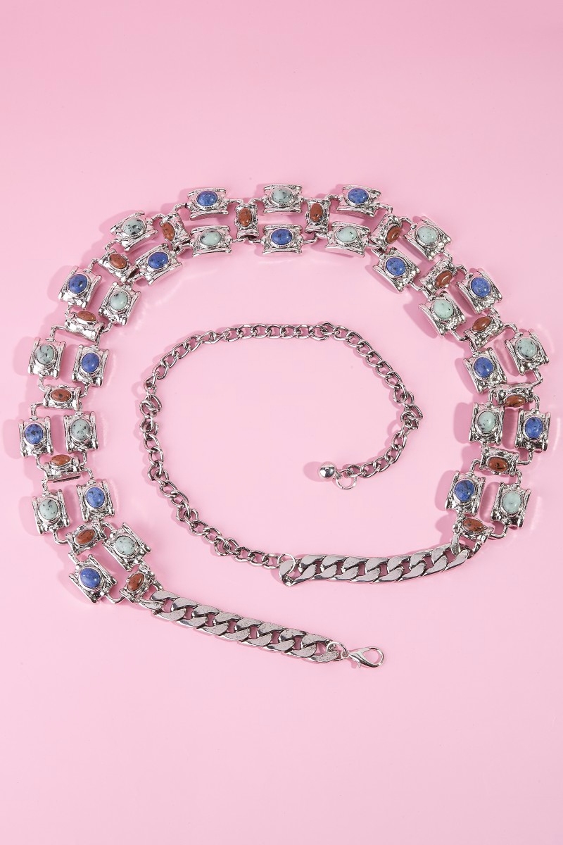 • This chain belt brings a stunning western concho stone style. Elevate your ensemble with this chain belt that effortlessly captures the essence of refined fashion.
