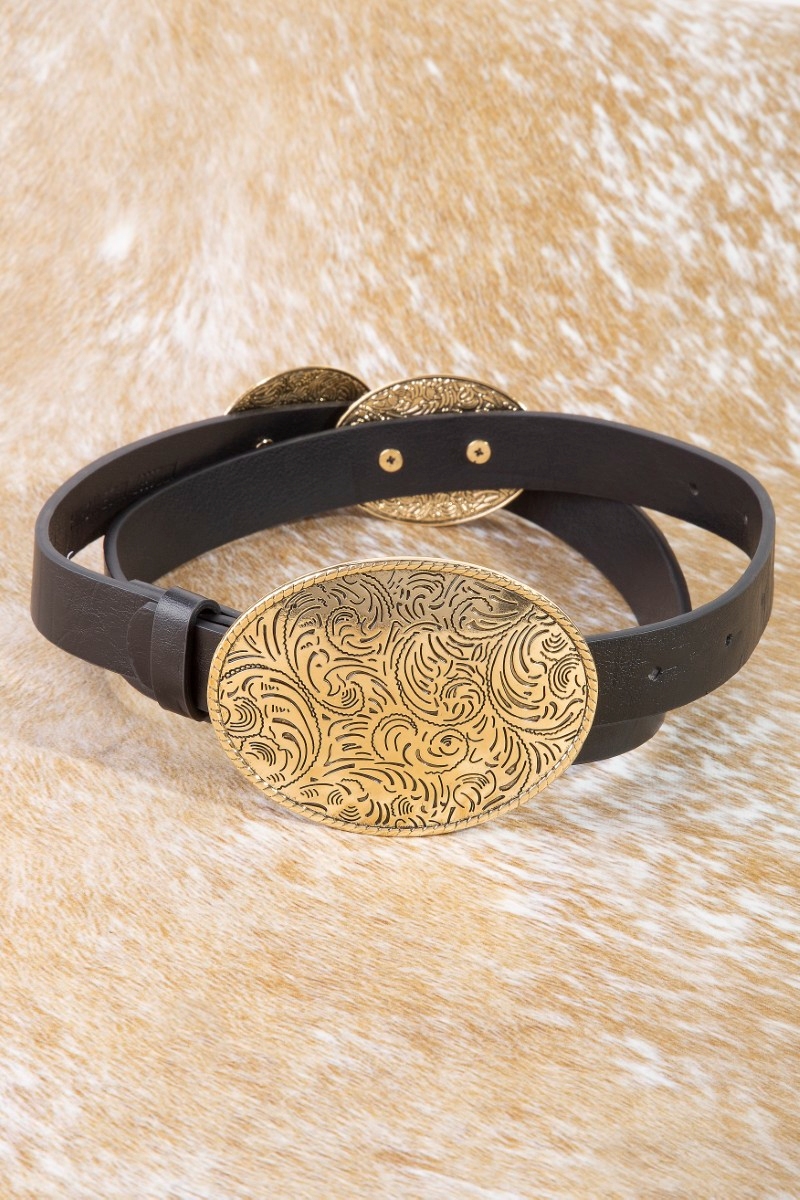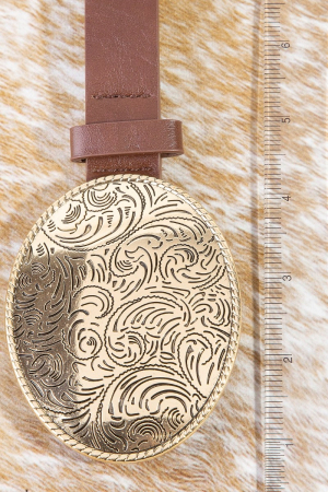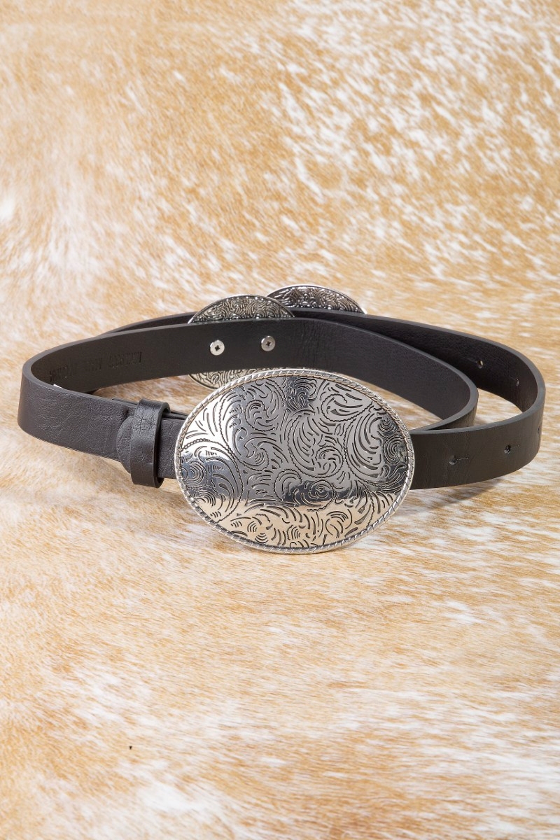 - This leather belt showcases a unique western oval concho style. Savor the craftsmanship that goes beyond the ordinary, as this leather belt effortlessly captivates attention.
