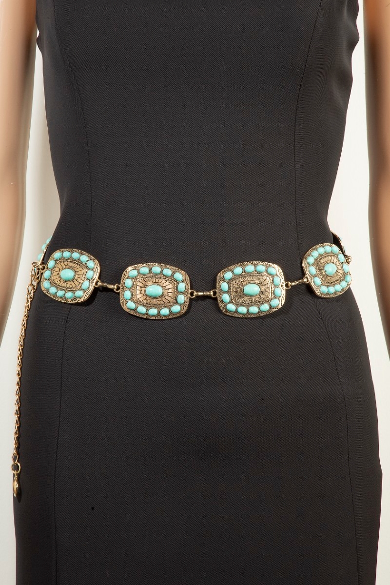 Turquoise Dome Stones Chain Belt