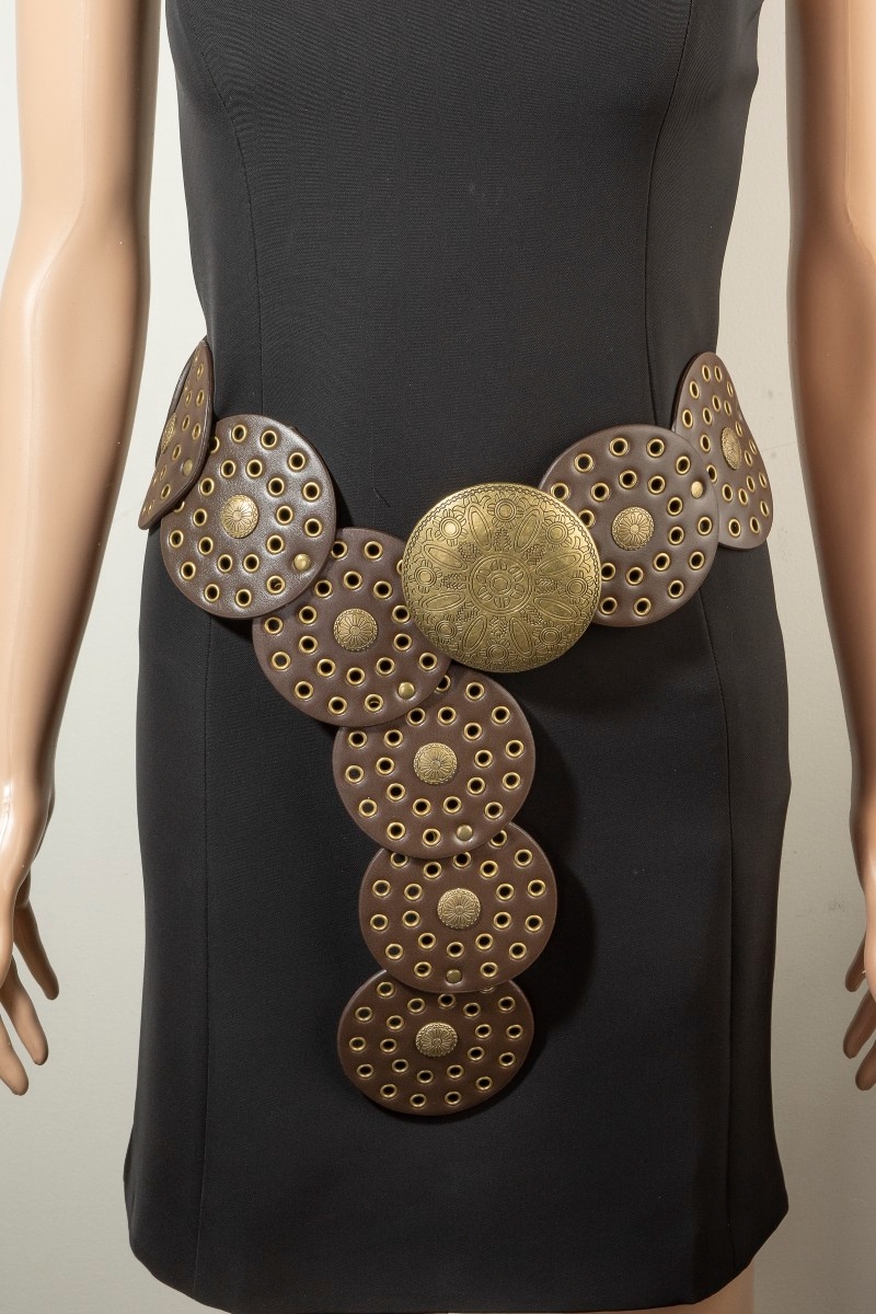 - This belt brings a unique faux leather western bohemian disc style. Immerse yourself in the world of understated glamour as this belt effortlessly exudes timeless appeal.