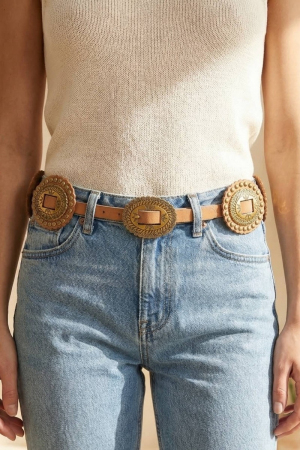 - This belt showcases a timeless intricate faux leather western concho style. Unveil a new dimension of sophistication as this belt effortlessly enhances the elegance of your ensemble.