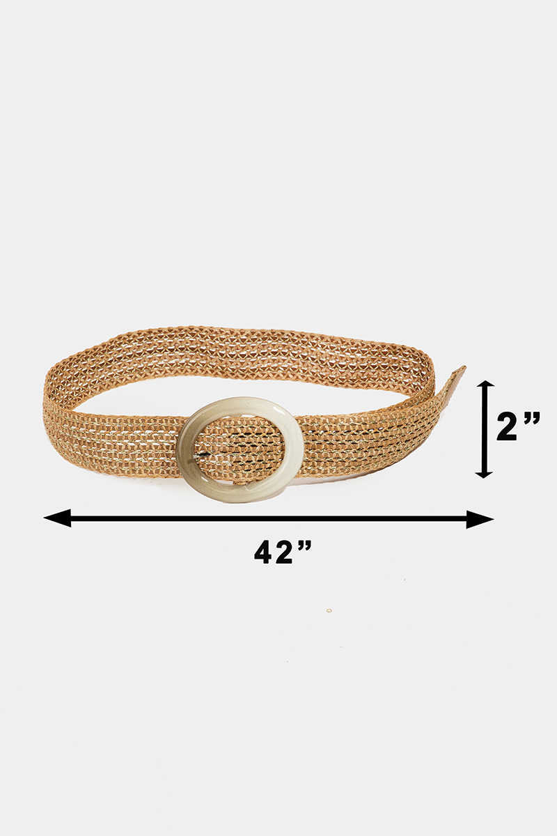 - This belt displays a fashionable intricate mesh braid oval hoop buckle style. Celebrate the art of accessorizing with this piece that effortlessly encapsulates modern trends.