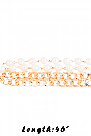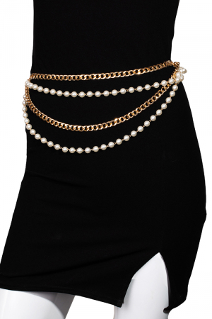 - This chain belt showcases a unique layered pearl style. Experience a burst of creativity in accessorizing as this piece effortlessly sets the tone for your unique style.