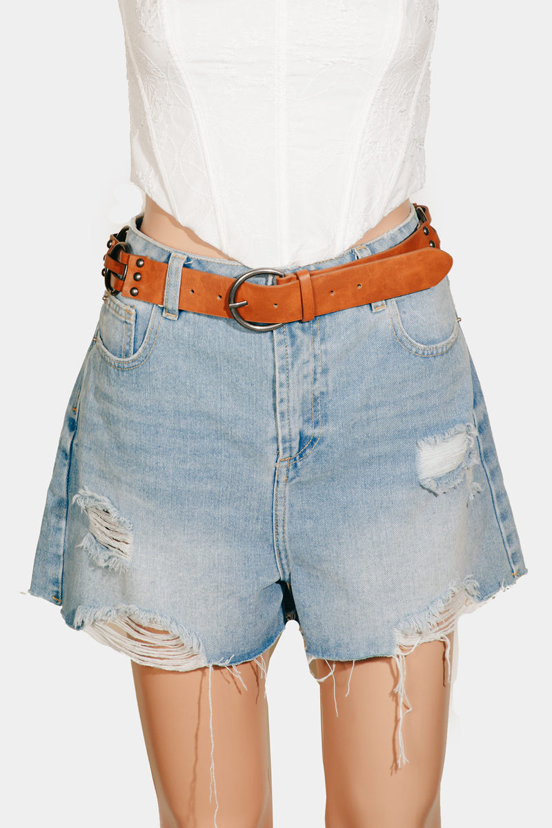 - This faux leather belt features a fashionable layered strand style. Experience a subtle blend of modernity and classic charm as this faux leather belt effortlessly adorns your ensemble.