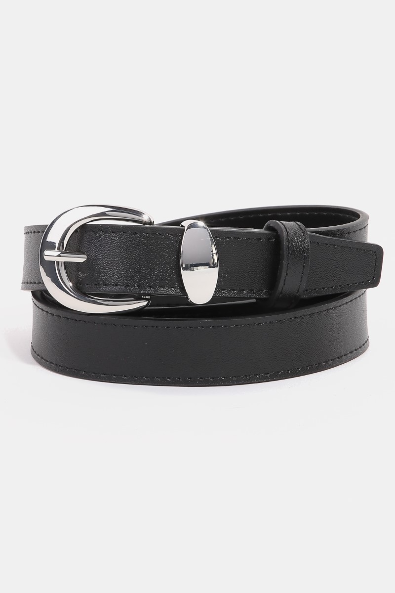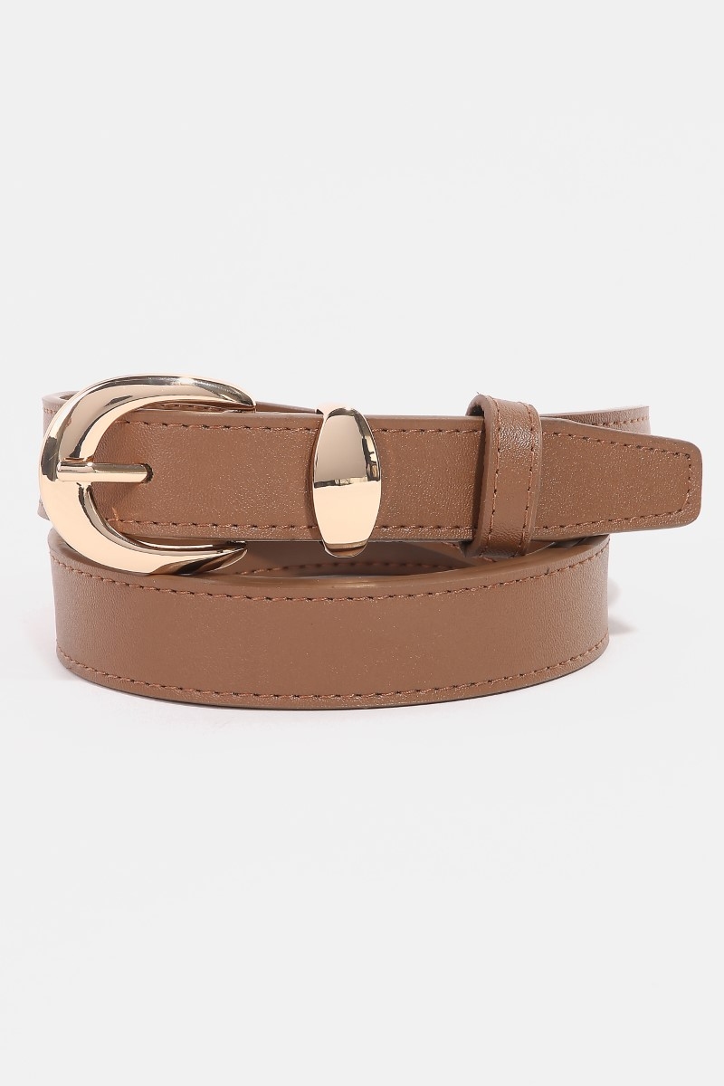 - This leather belt brings a luxurious metallic crescent buckle style. Discover the perfect balance of functionality and fashion.