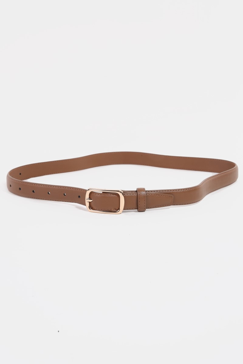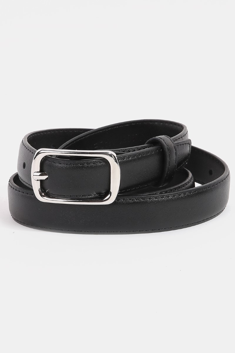 - This leather belt adds a modern metallic rectangle buckle style. Discover the perfect balance of subtlety and flair as this leather belt effortlessly completes your look.