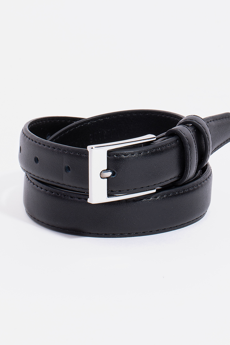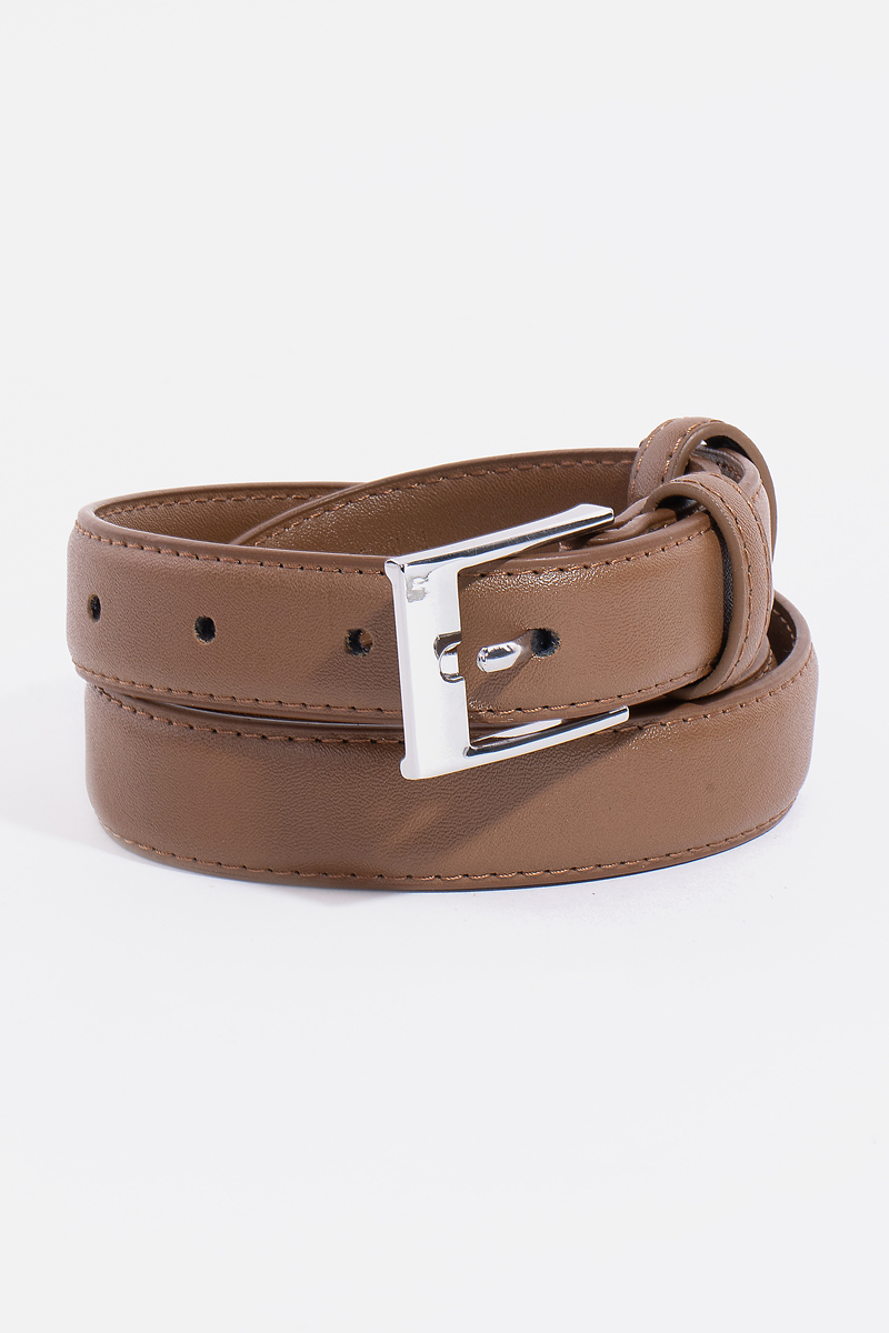 - This leather belt brings a unique stitched border rectangle buckle genuine style. Unveil modern elegance with this subtly intricate leather belt.