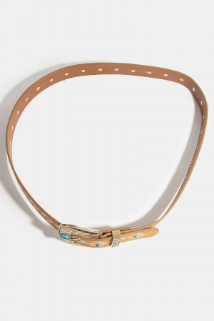 - This leather belt brings a stunning turquoise studs concho buckle vegan style. Immerse yourself in fashion finesse with this statement leather belt.