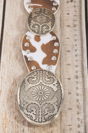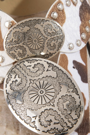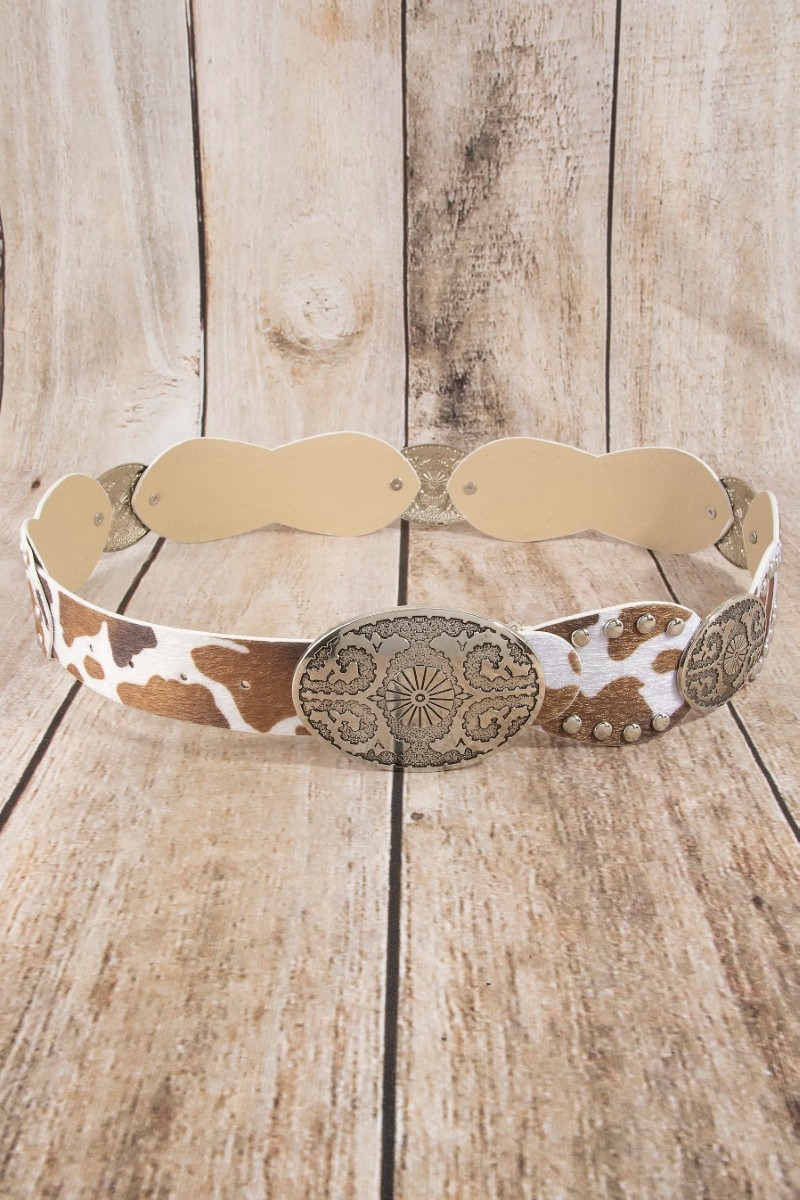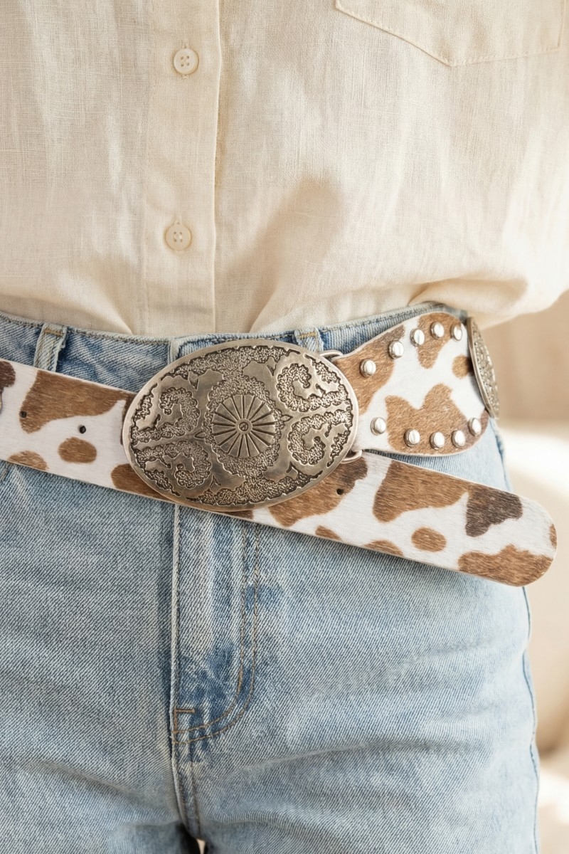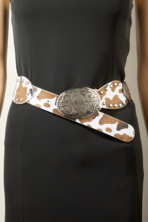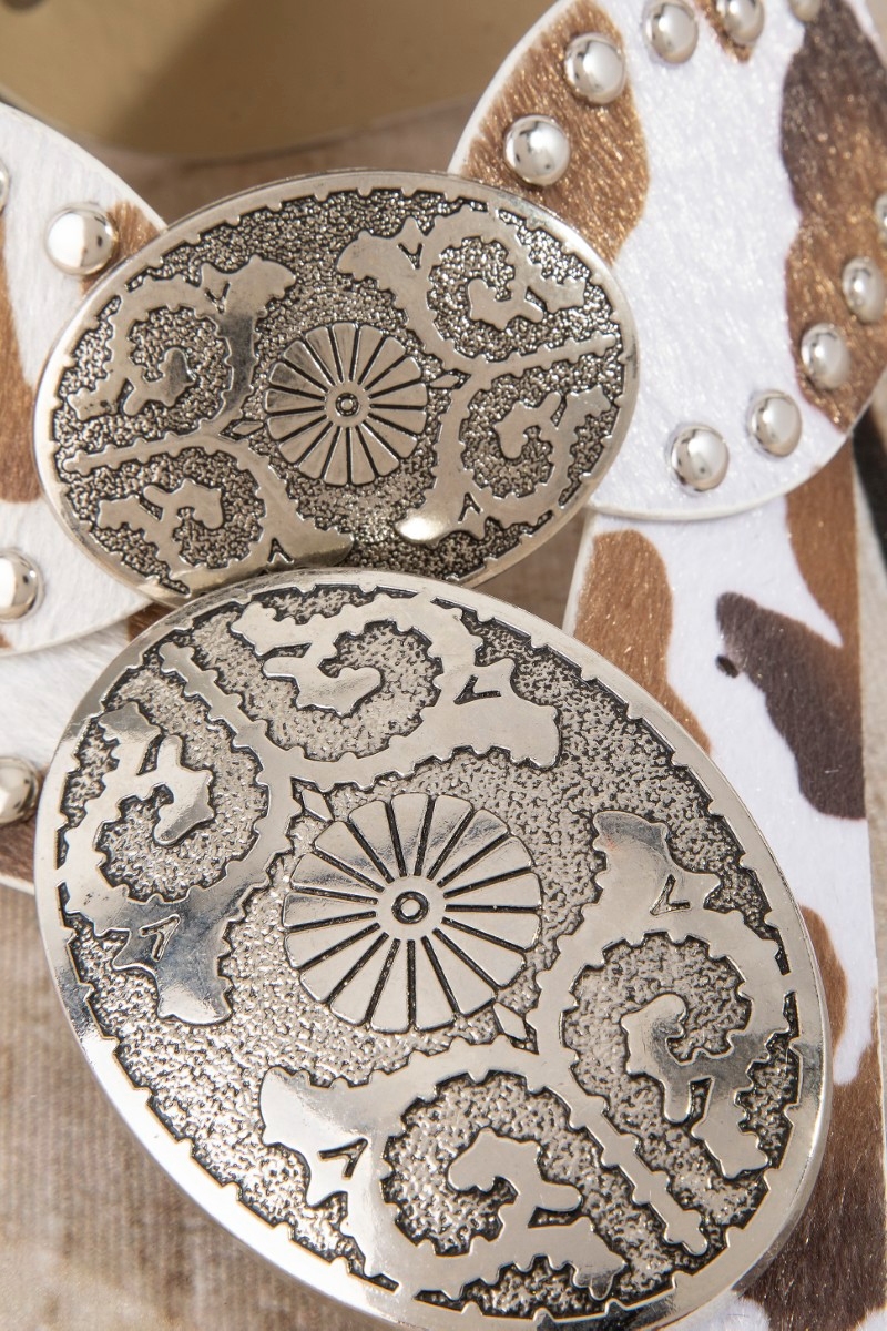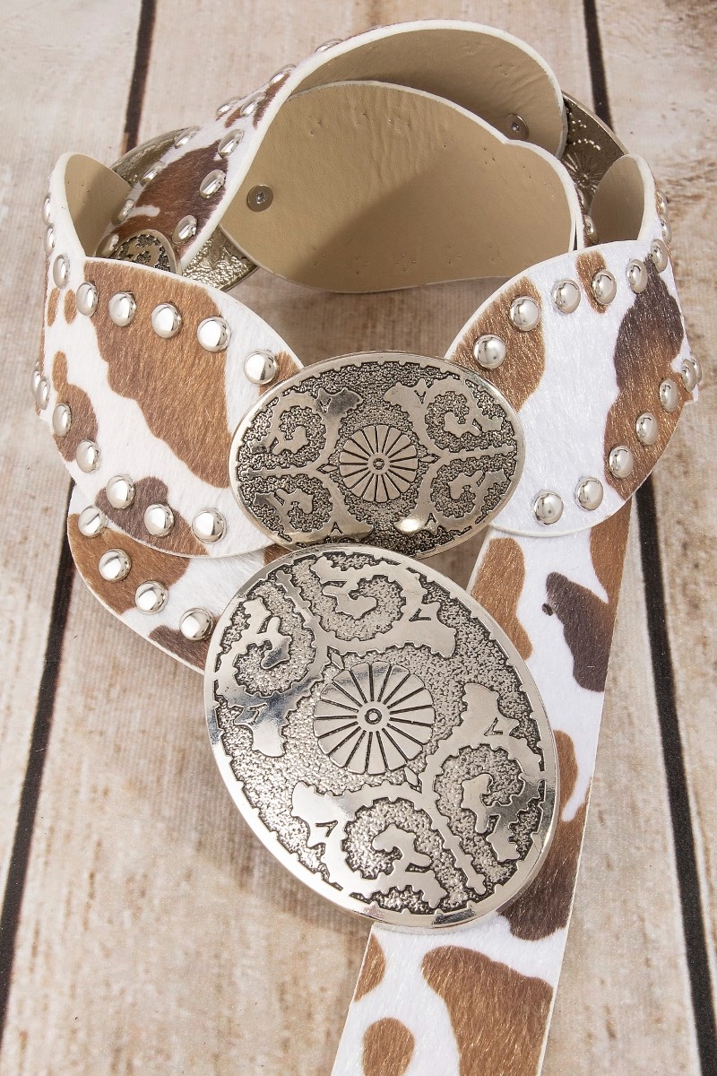 - This leather belt introduces a stunning western oval concho studded trim vegan style. Immerse yourself in the details of design, as this leather belt effortlessly becomes a conversation starter.
